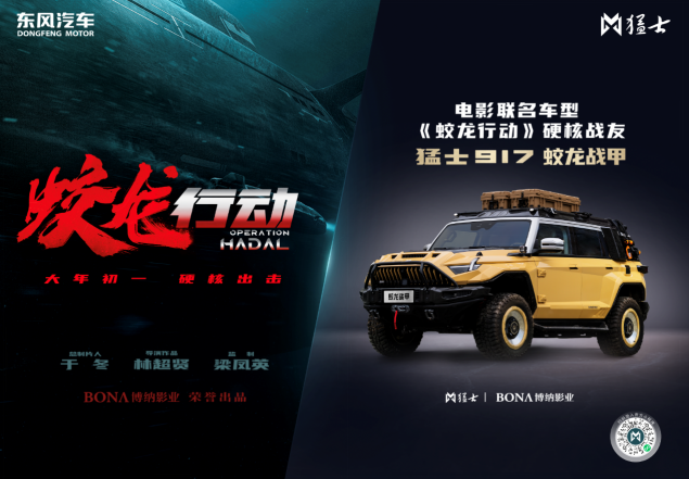 临近岁末,随着《蛟龙行动》开启春节档预售,“硬核搭子”猛士917蛟龙战甲也即将在大年初一迎来银幕首秀,一起开年提气。作为中国第一款电影联名车,这款为《蛟龙行动》量身定制的“超级战车”,由东风猛士科技携手博纳影业联合打造,是东风猛士高奢联名定制整车的生动缩影,也是有力见证。
