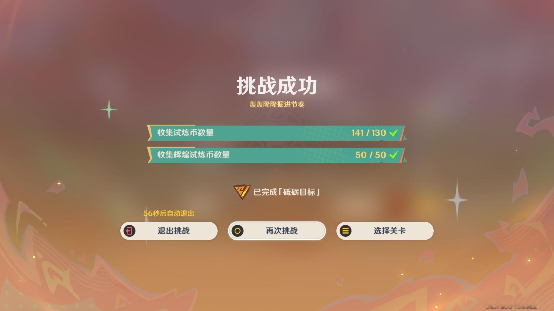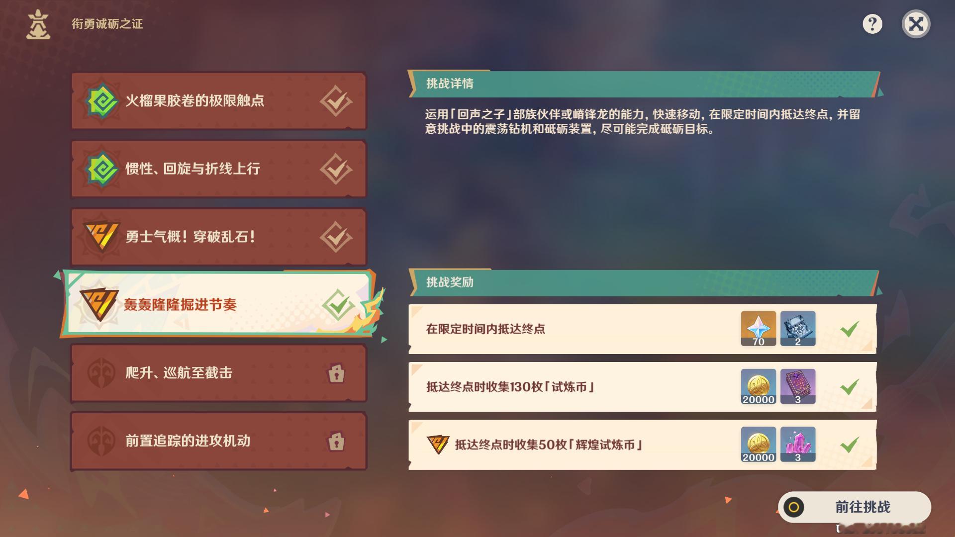 小提示:在挑战途中会有「砥砺目标」装置,开启装置完成额外的挑战(也是收集金币)才能拿满奖励噢!