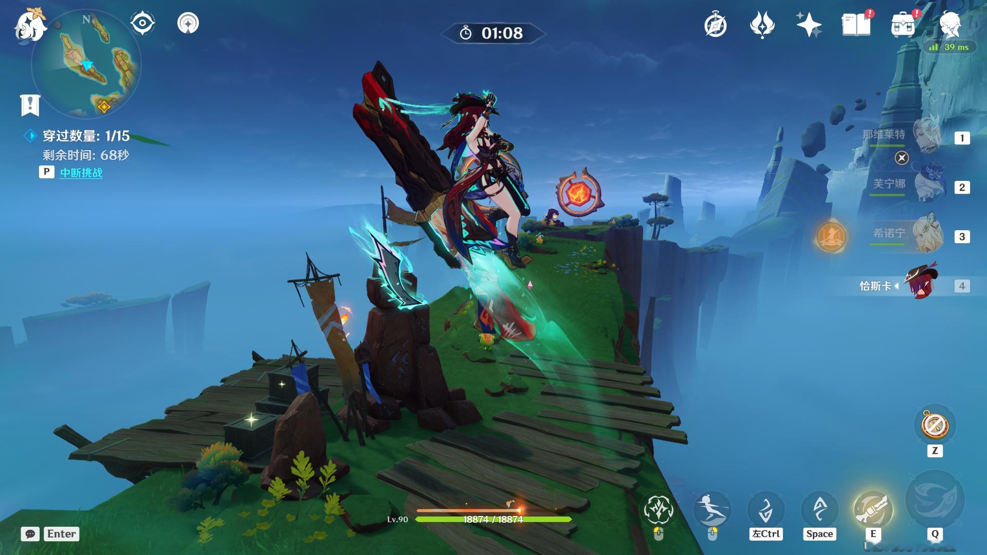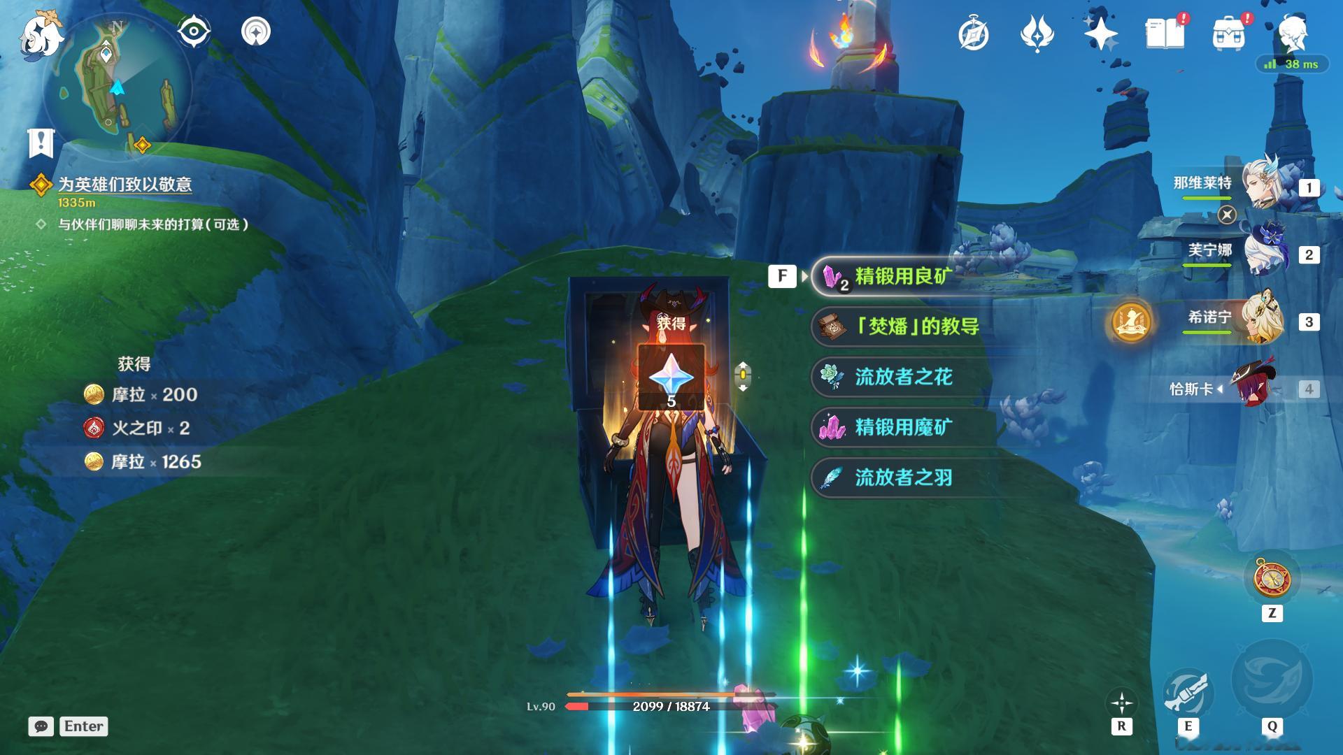 在附近附魂绒翼龙穿越燃素环来完成挑战,挑战完成后可获取宝箱,开箱5原石!