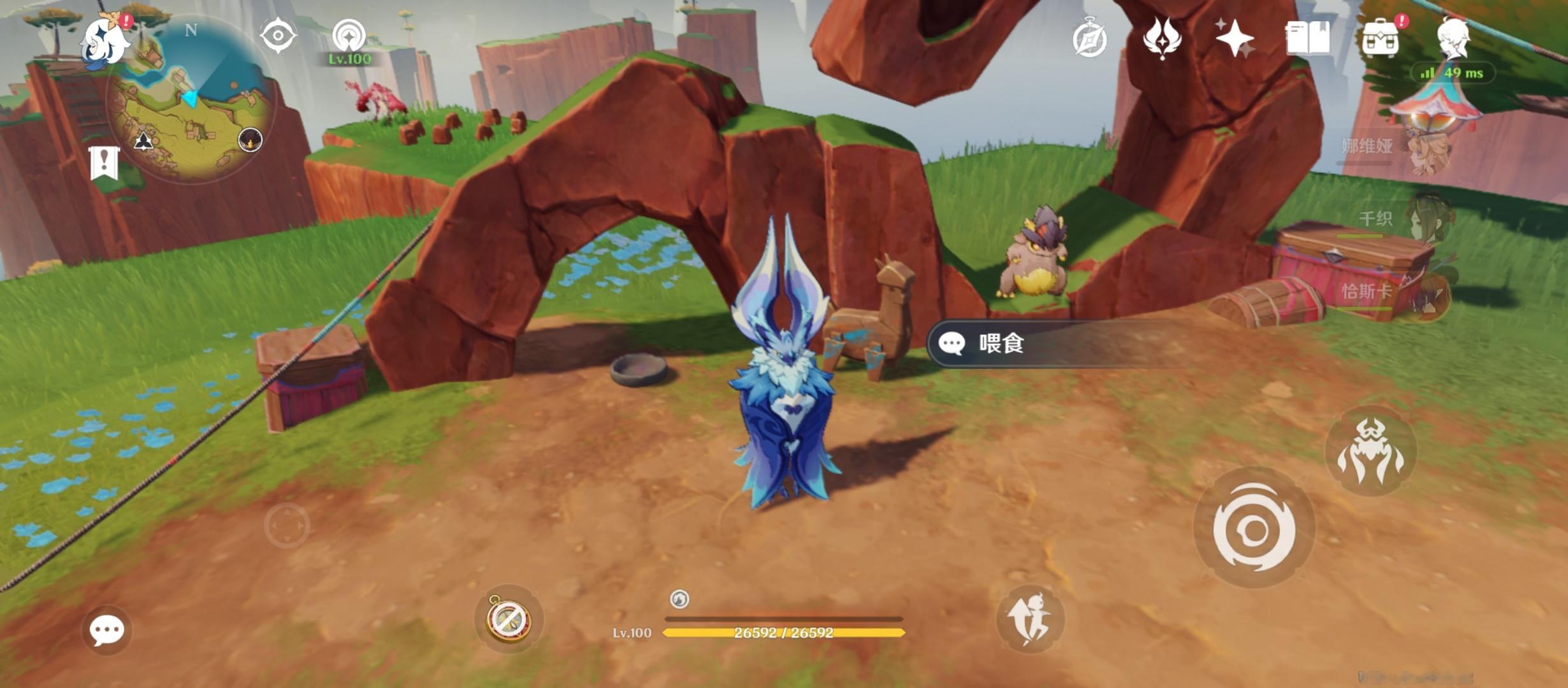 原神[超话] 纳塔-翘枝崖图一位置有几只可爱的小龙,在小龙面前的饭盆中各放入一块背包里常备的龙龙饼干,喂食后引导它们站在指定位置拍照。