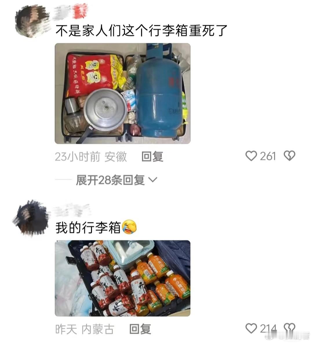 大学生行李箱除了行李什么都有 不得不说,大学生在春运期间的行李箱选择太有个性。