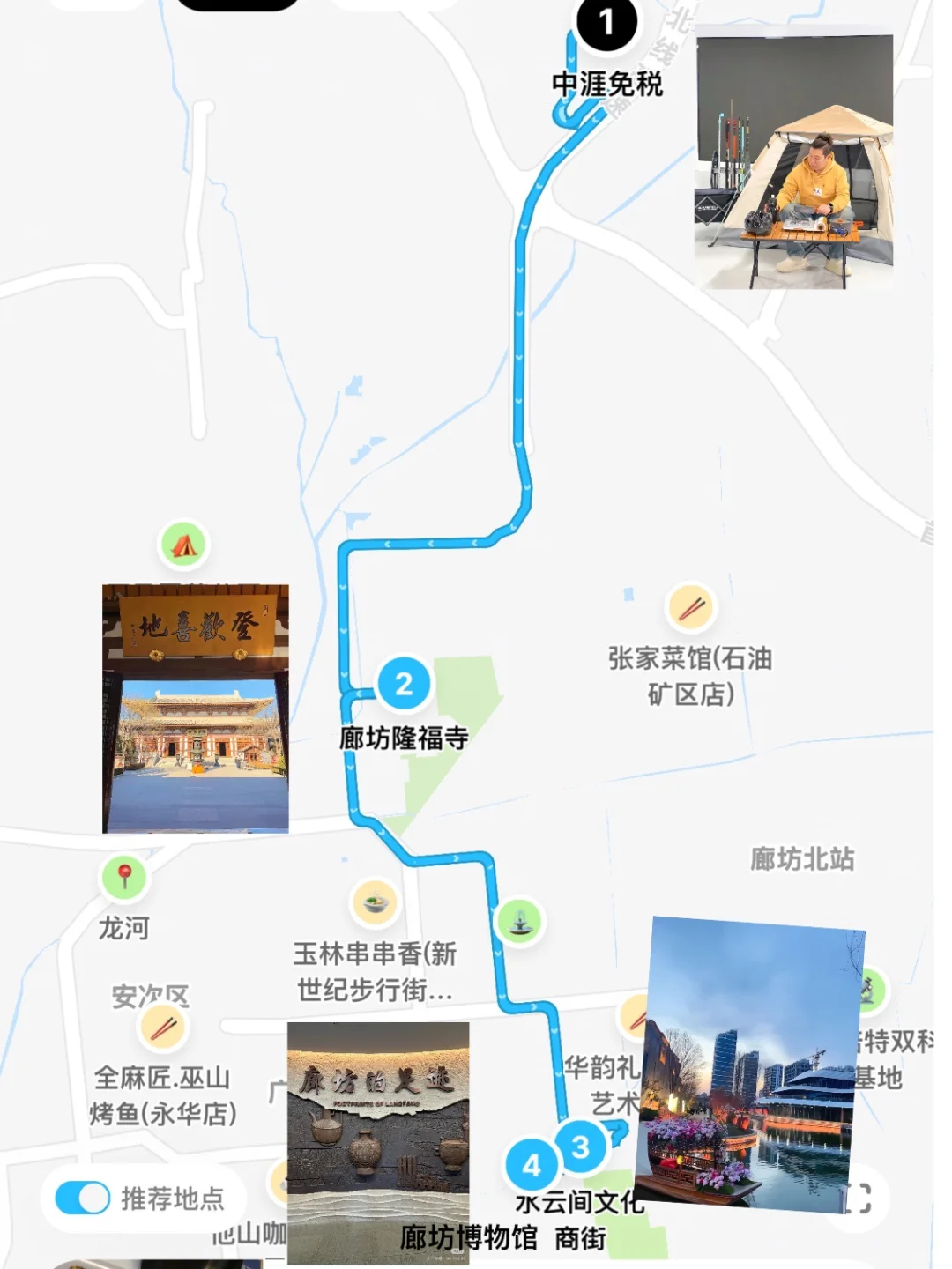 廊坊博物馆👉水云间文化街👉廊坊隆福寺👉中涯免税