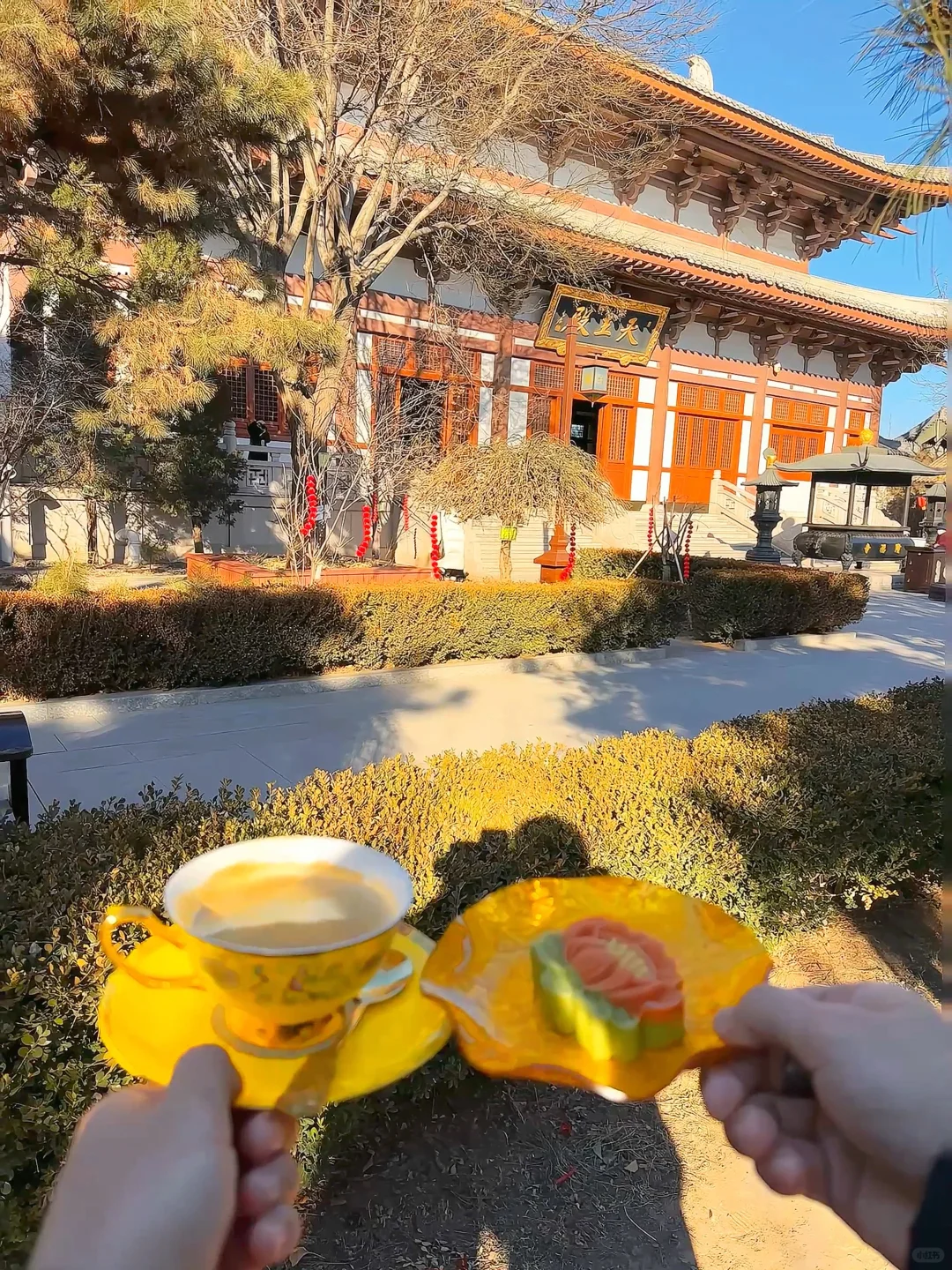 [拔草R]吃糕点的朋友,糕点在天王殿前售卖,出了佛堂咖啡,坐在寺里晒太阳,听悦耳的风铃声