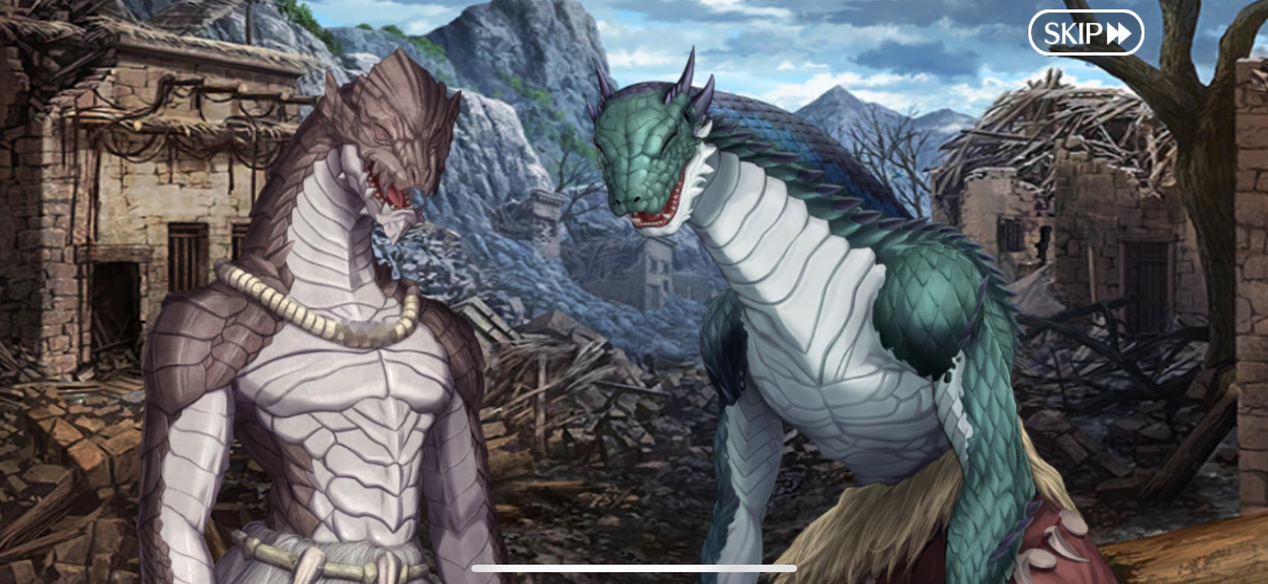 一行人来到广场,发现这里聚集了许多蛇龙人,还弥漫着一股食物的香味。