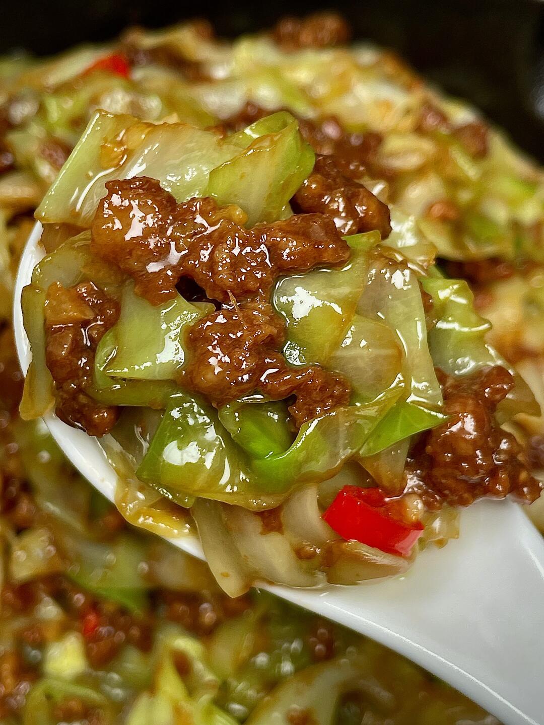 超好吃的包菜炒肉沫嘎嘎下饭 肉沫焦香嫩滑,包菜脆爽鲜甜,两碗米饭都不够炫,泰香了