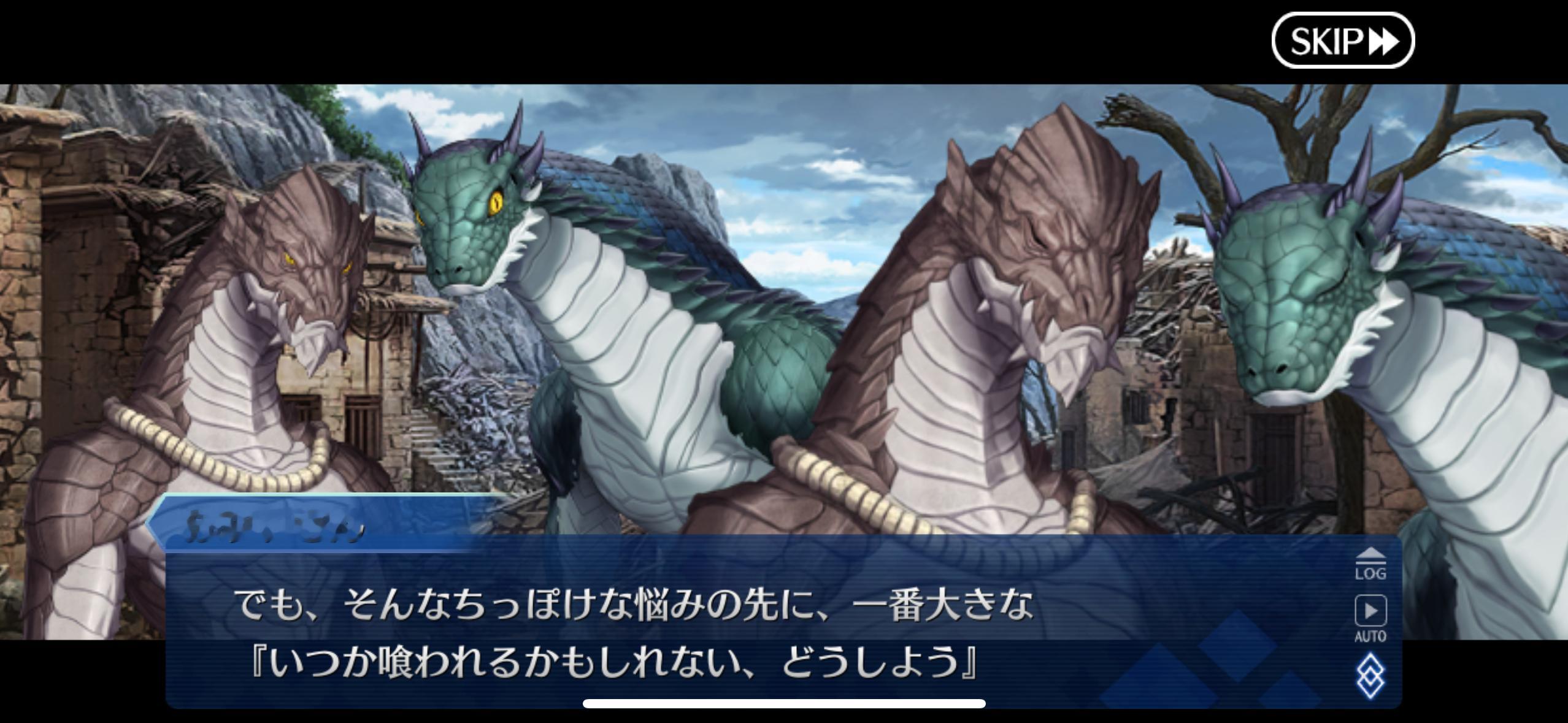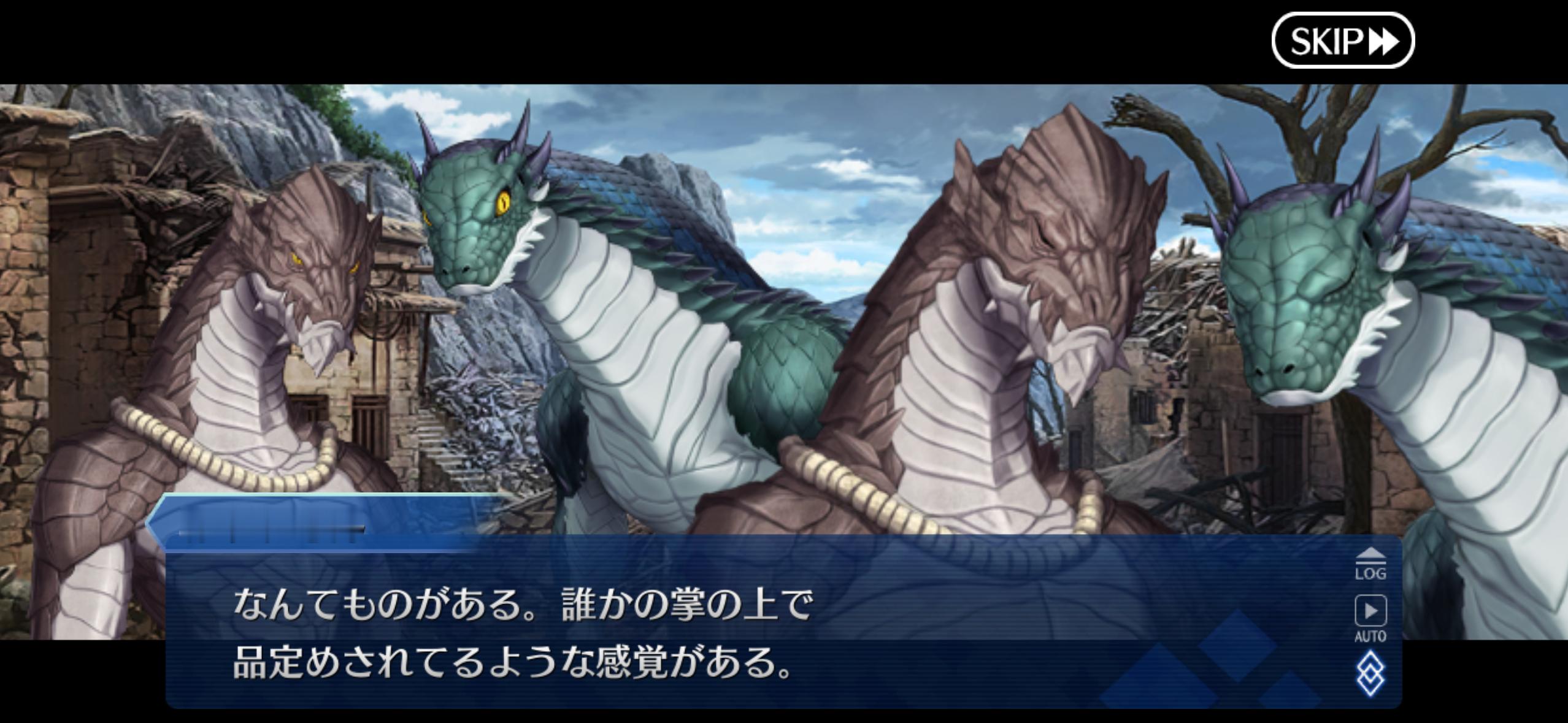 虽说没亲眼看过,但镇里的人不知为何都明白自己的镇子建立在一条巨蛇的身上,也清楚这条蛇属于扎哈克。所有人都明白自己自己和扎哈克的差距,觉得就像是被人放在掌心品评一样。蛇龙人们放弃了反抗,不去想自己是食物这一点,自欺欺人地生活下去,有些人则是选择了自暴自弃。