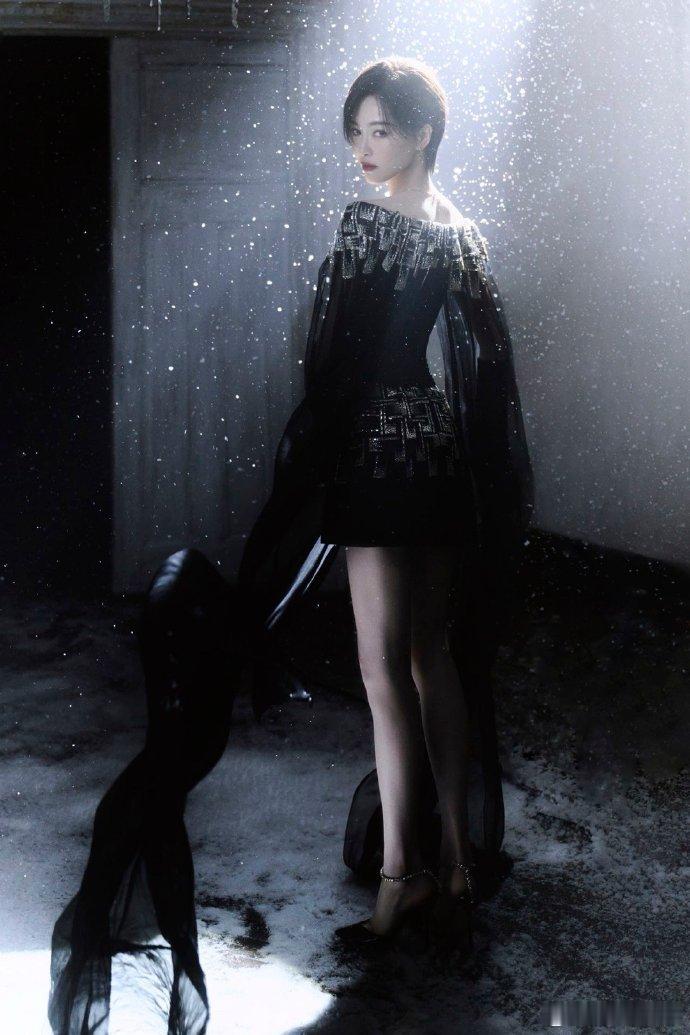 唐嫣 浮光落雪 唐嫣的美,如同雪花般纯洁,又如同光影般绚烂。黑色短裙的她,在浮