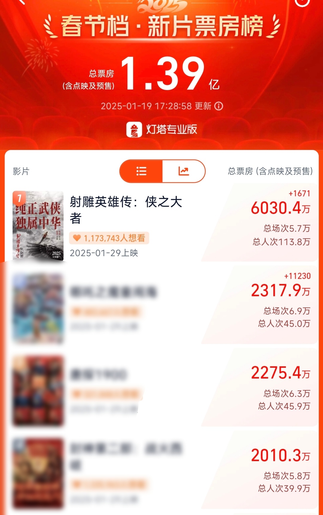 2025春节档预售不到一天超一亿 射雕英雄传侠之大者破6000万了!请大家保持速