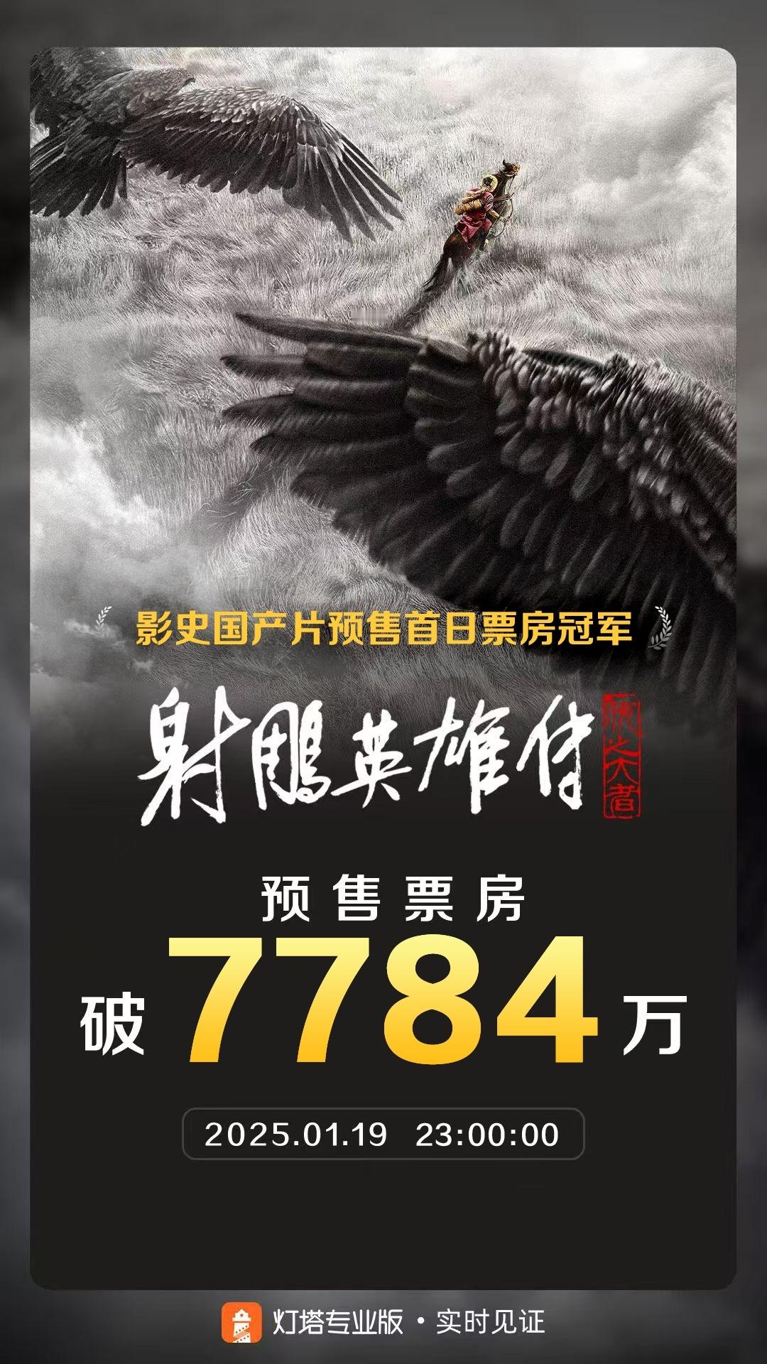 射雕英雄传影史国产片预售首日票房冠军 肖战领衔主演的射雕英雄传侠之大者,连破8个记录!预售总票房突破8000万,成为中国影史国产片首日预售票房冠军,并成为中国影史春节档预售最快破8000万影片!太牛逼啦[赞][赞][赞]