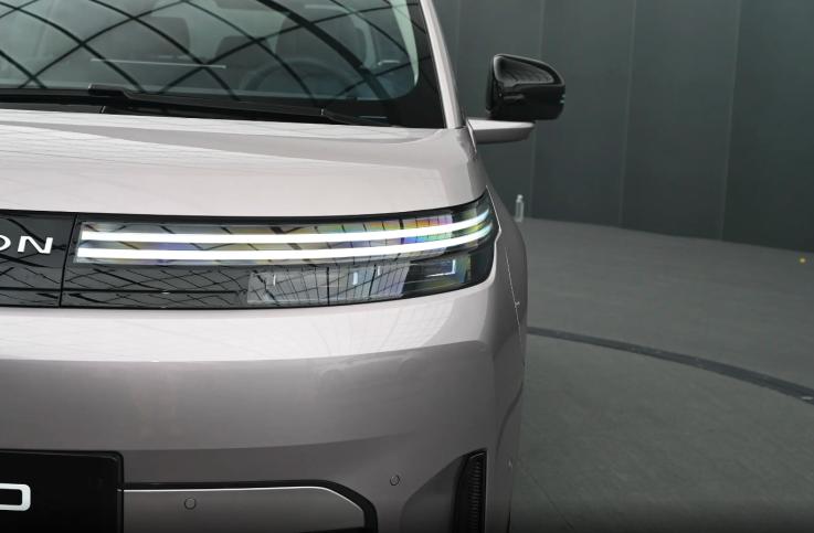 再看细节,新车外观采用全新风格,前脸中央黑色贯穿饰条融合双灯带LED日行灯、矩形LED大灯以及可发光LOGO,车辆前包围和两侧雾灯区域均配备通风口设计,整体风格简洁,富有科技感,灯光点亮后辨识度较为突出。车身侧面的轮廓简洁规整,十字样式低风阻轮圈提升了外观的科技气息,半隐藏式门把手与悬浮式车顶设计呼应,迎合了现代年轻消费者的审美品味。值得注意的是,为了整体型面协调统一,避免突兀感,设计师将摄像头传感器隐藏在轮眉边框和外后视镜下方,但这也会带来一个问题,若前轮区域发生剐蹭和碰撞,那么维护成本也将提升。