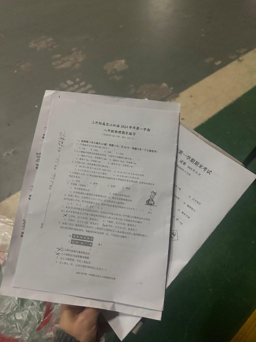 上外附属宝山双语2024学年第一学期八年级物理期末练习试卷啊