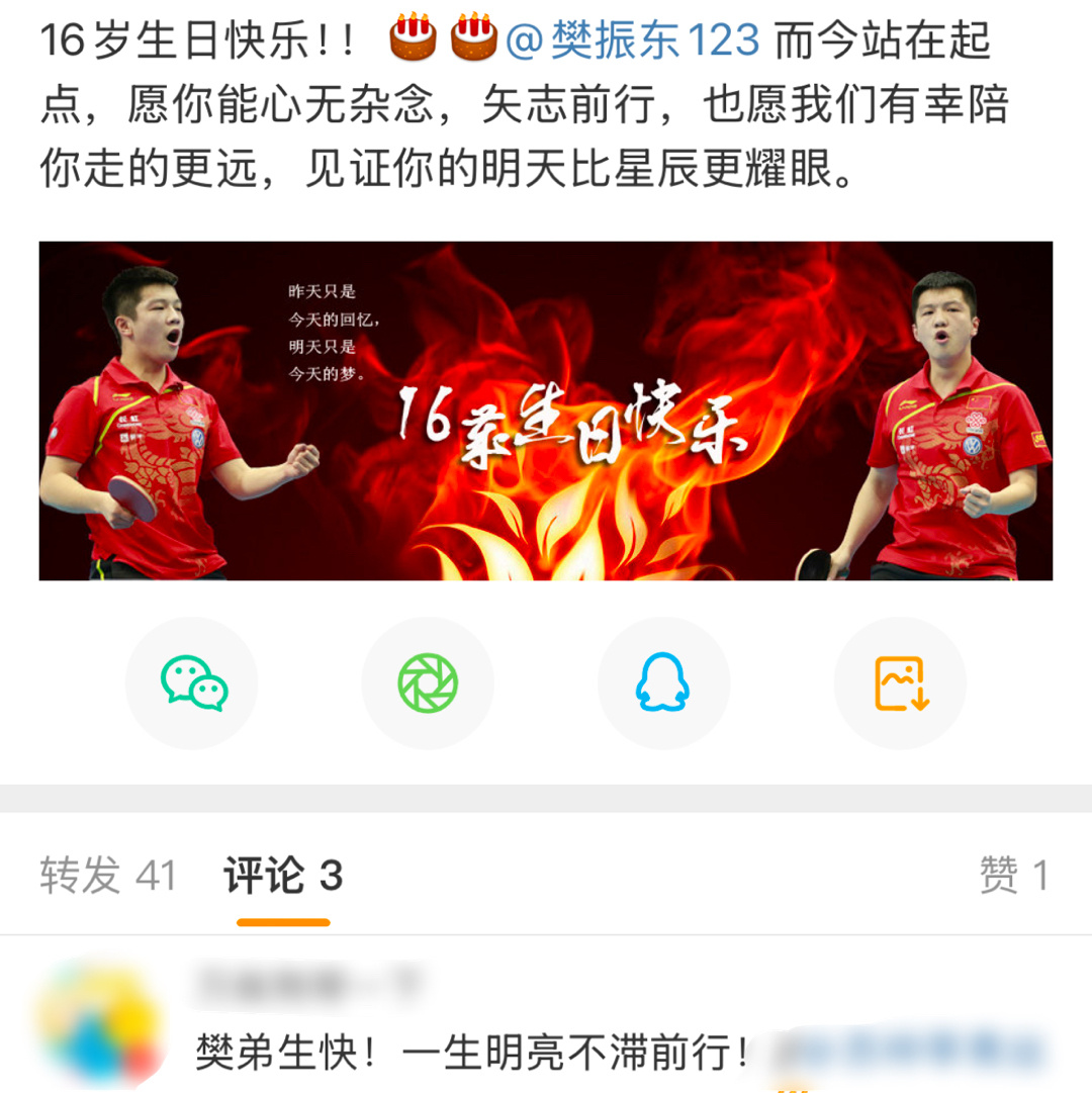 认识你的时间线绕不开的是几个队伍名字,时间或长或短,你几近虔诚地回报着每一个滋养过你的地方。 刚到八一你才那么小,我在无数张层层叠叠的照片里试着找你的痕迹,侧面背面半侧面,找到一些模糊的,像小牛犊一样轰隆隆冲向世界的身影。“我叫樊振东,你们可以叫我小胖,记住这张面孔”于是很多人在土豆网480p的时代结识了一个小孩,你开始发芽。那时你有充分的阳光和雨水灌溉,有团结的队伍,默契的队友和看重你的教练,你一日千里地疾驰,早早成为一匹良驹,路途也有一些眼泪,少年人的眼泪是不忿是不甘,抱有掉落到地上会听到清脆响声的决心。好在命运没有太辜负你,这条路你走得很坚定。