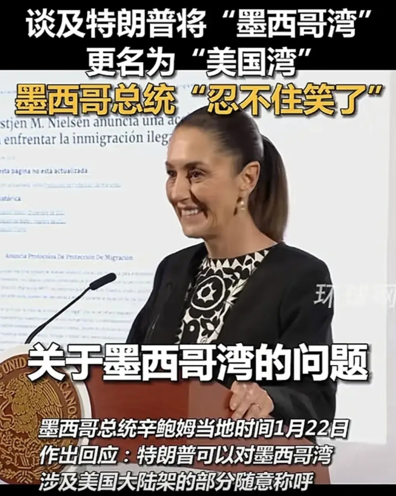 对此,墨西哥女总统辛鲍姆有了新回应,她在当地时间1月22日说道,美国可以随意命名美洲地区的地理称谓,这显然不合理,没有遵循大多数人的意愿。