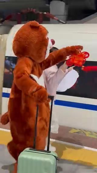 网友高铁偶遇熊大熊二 这年头,连熊大熊二都加入春运大军了。提着行李箱挤进车厢,看着就辛苦,希望它们一路顺风,顺利抵达目的地。