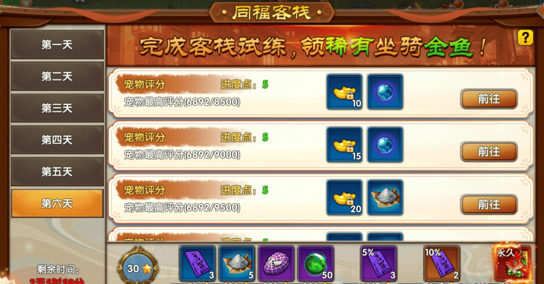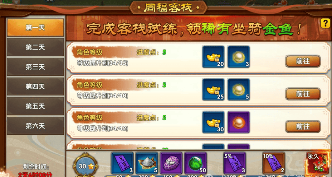 开服后连续六天每天解锁一系列客栈专属任务,完成任务就能获得传说级坐骑“金鱼”!这坐骑不仅外观炫酷,移动也来到了5.5,是开荒冲级的必备神器。
