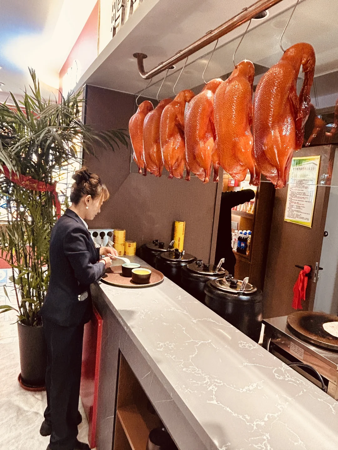 今年过年想带家人在外面吃 不用收拾还可以吃的舒心 吃了这么多次烤鸭 他家的味道和性价比都是可以的 我们吃了一大桌子菜不过千 他家的环境不沉闷 店里🈶️好多绿植🪴 包厢坐的人数也多 一家人坐在一起吃饭才叫家么~