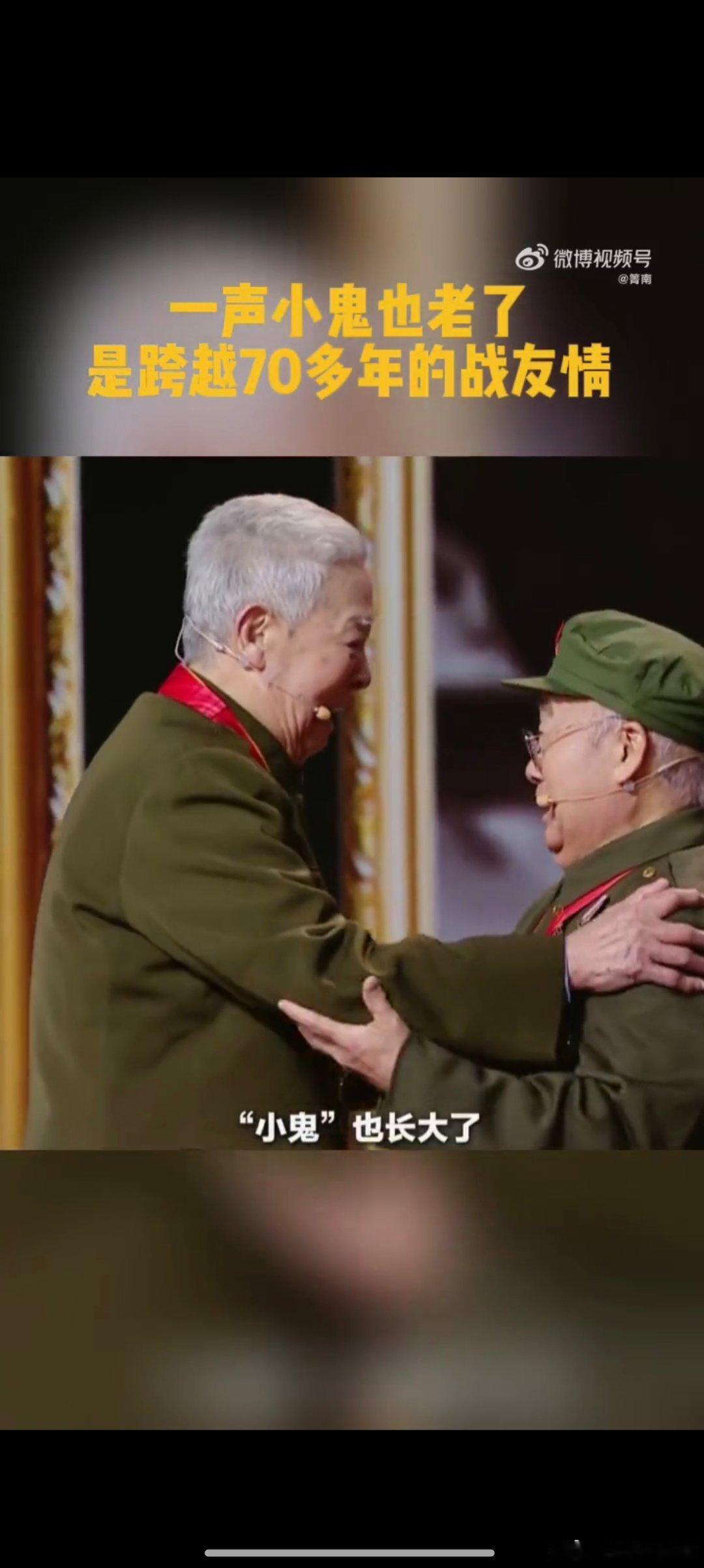 一声小鬼也老了是跨越70多年的战友情 时光荏苒,战友情深!70多年前的青春誓言,如今已化作白发沧桑。山东春晚上,抗美援朝老战士的重逢,让我们见证了不朽的战友情!