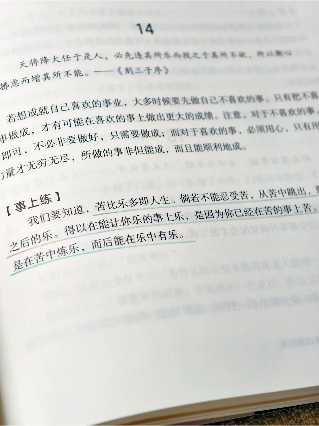 倘若不能忍受苦,从苦中跳出,那就很难有之后的乐。得以在能让你乐的事上乐,是因为你已经在苦的事上苦。事上磨炼,是在苦中炼乐,而后能在乐中有乐。