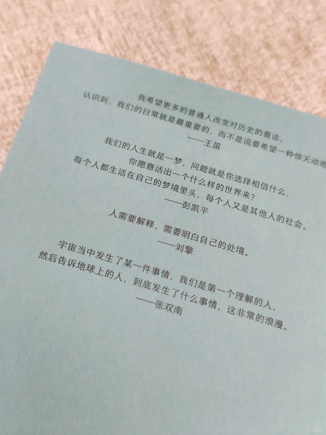 “你并非独自言说,孤立行动,你是过往回响的继续,是喧哗众声的一员,也注定延续到未来。我意识到,历史是一个巨大的存储器,所有人的努力与情感皆不会消失,它们一直在那儿,等待被另一些人发现,在另一个时空再度绽放。”