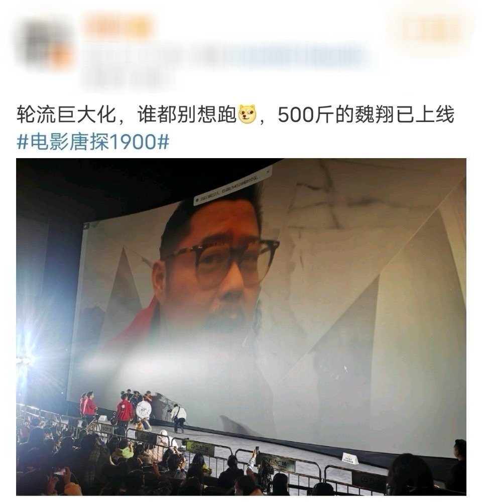 看电影见到和荧幕一样大的脸了 电影《唐探1900》线下活动,魏翔在大屏上给大家拜
