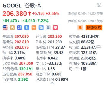 谷歌A(GOOGL.US)盘前跌7.22%,报191.47美元。消息面上,谷歌母公司Alphabet第四季度营收约964.69亿美元,同比增长11.8%,分析师预期965.73亿美元;每股收益为2.15美元,同比增长31.1%,分析师预期2.13美元。期内谷歌云业务收入119.55亿美元,同比增速从三季度的35%放缓至约30%,亦低于分析师预期的121.55亿美元。另外,谷歌预计2025年资本支出将高达750亿美元,意味着同比增加42.7%,远高于分析师预期的579亿美元。(格隆汇)
