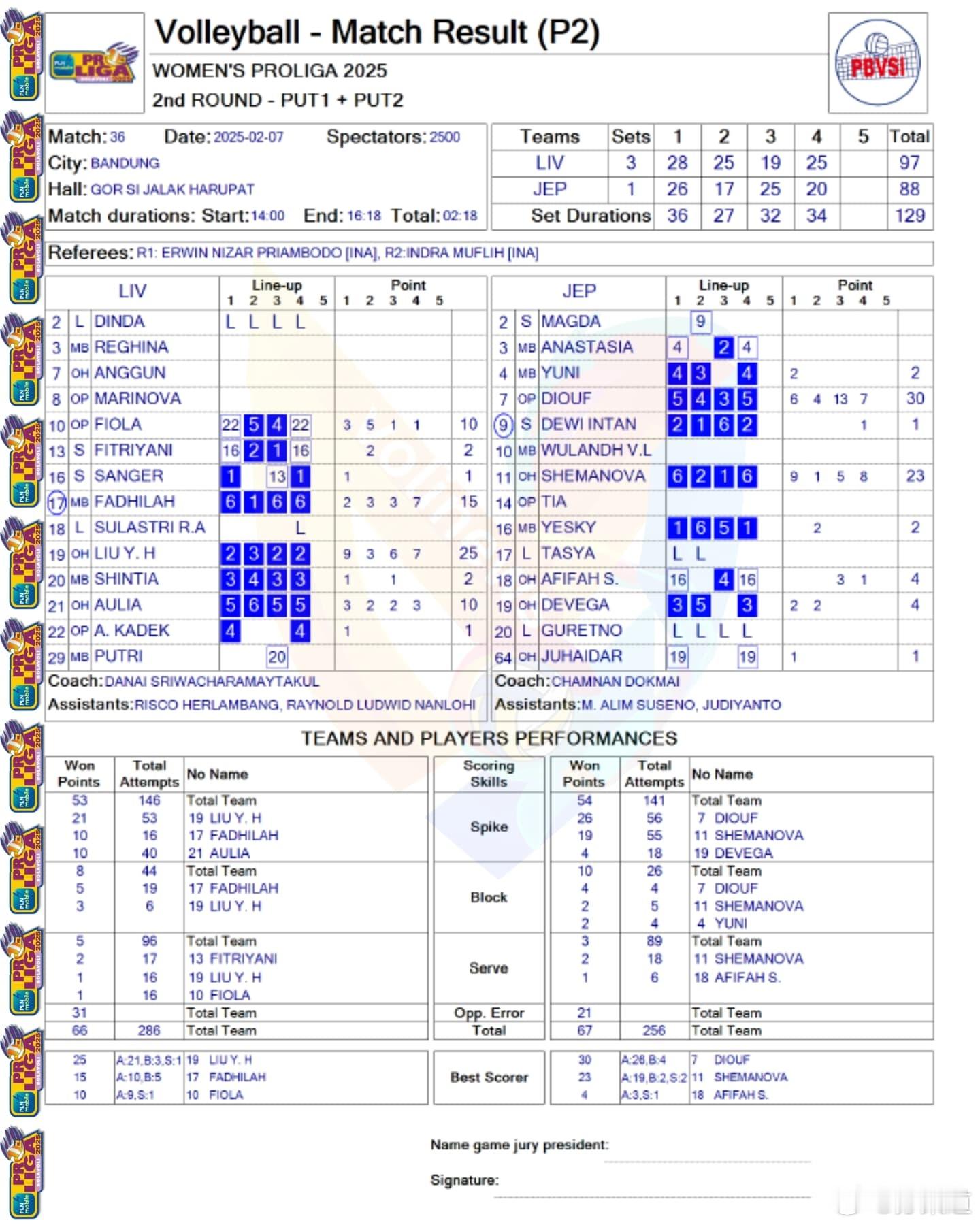 刘晏含25分 53扣21中 3拦1发,比赛的时候就看到大刘的脸上有个东西,是东南亚的装饰品?马里诺娃此役没有登场,全程在场边当啦啦队