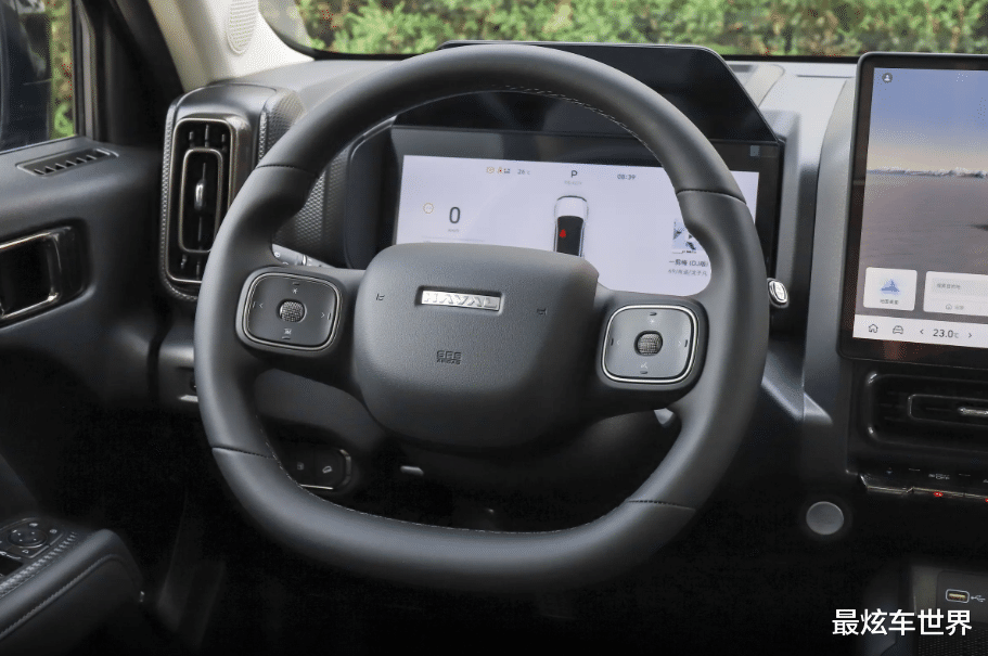 来到车内,2026款哈弗猛龙PHEV的最大变化就是换装家族双幅式平底方向盘和电子怀挡,12.3英寸液晶仪表盘和14.6英寸中控屏没有缺席,内置最新咖啡3车机系统,支持多种手机互联系统,与车机系统进行互联后将解锁更多功能,车内继续保留丰富物理按键,再加上副驾驶正前方的外露式把手,彰显出这类车型该有的特色。换挡系统采用怀挡设计后为前排中央通道区域节省了更多储物空间,两侧物理按键没有缺席,这也是当前比较主流的设计手法。
