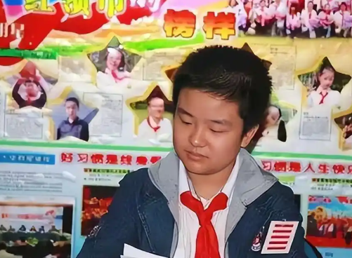 在这篇博文里,还配了一张他的图片,照片里他系着红领巾,佩戴着五道杠队长标志,双手插在兜里,给人一种“官相十足”的感觉。黄艺博那时正在武汉市江汉区滑坡路小学六年级,因为表现突出,被推选为武汉市少先队的副队长,而这一组照片,正是黄艺博当选那天拍摄的。