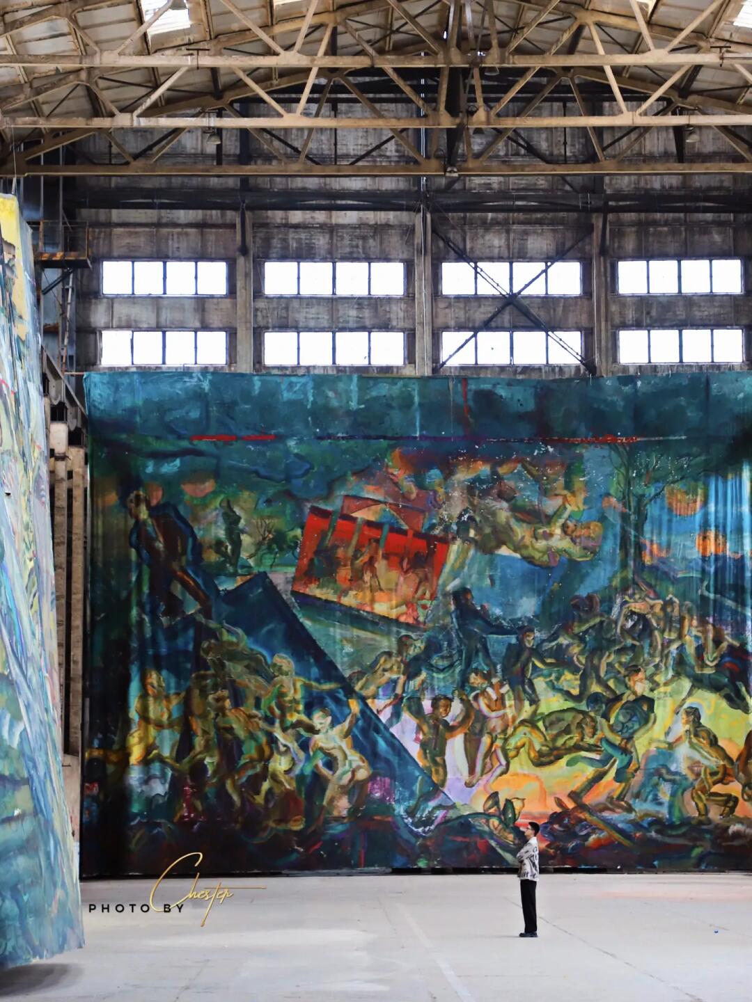 快去看讲真, 这是我看过最震撼的一场艺术展。 . 👨🏻🎨90后彝族艺术家【耍惹石主】 在这里住了3年 消耗1000+箱颜料创作出几百副作品 最夸张的巨副画作重达1100斤 在3000平的废弃锅炉厂展出 …… 每一个点都让我恨不得开展当天就狂奔过去‼️ . 🏭“蒙格” 耍惹石主个展
