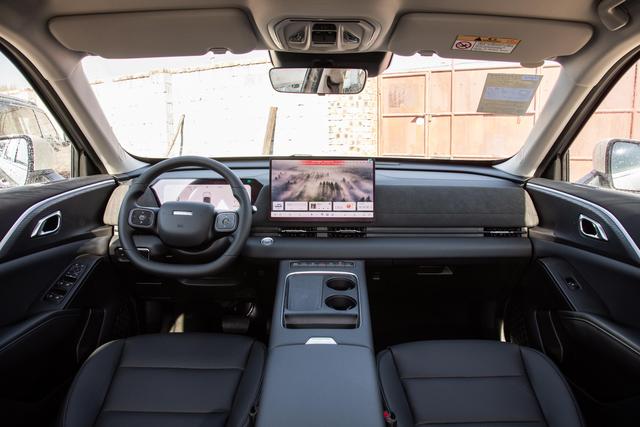 坐进车内,内饰布局延续了外观的科技感和温馨感,有黑棕、米棕两种配色可选,能满足不同家庭的审美偏好。全系标配的怀挡设计,是内饰的一大亮点,操作起来很便捷,而且不用在中控台装常规挡杆,省出了不少储物空间,中控台区域看着整洁又规整。正前方的仪表屏信息很全,车速、油量、续航这些关键数据都能清晰显示,搭配HUD抬头显示功能,导航路线、车速等核心信息能直接投射到前挡风玻璃上,开车时不用低头就能查看,大大提升了行车安全性。