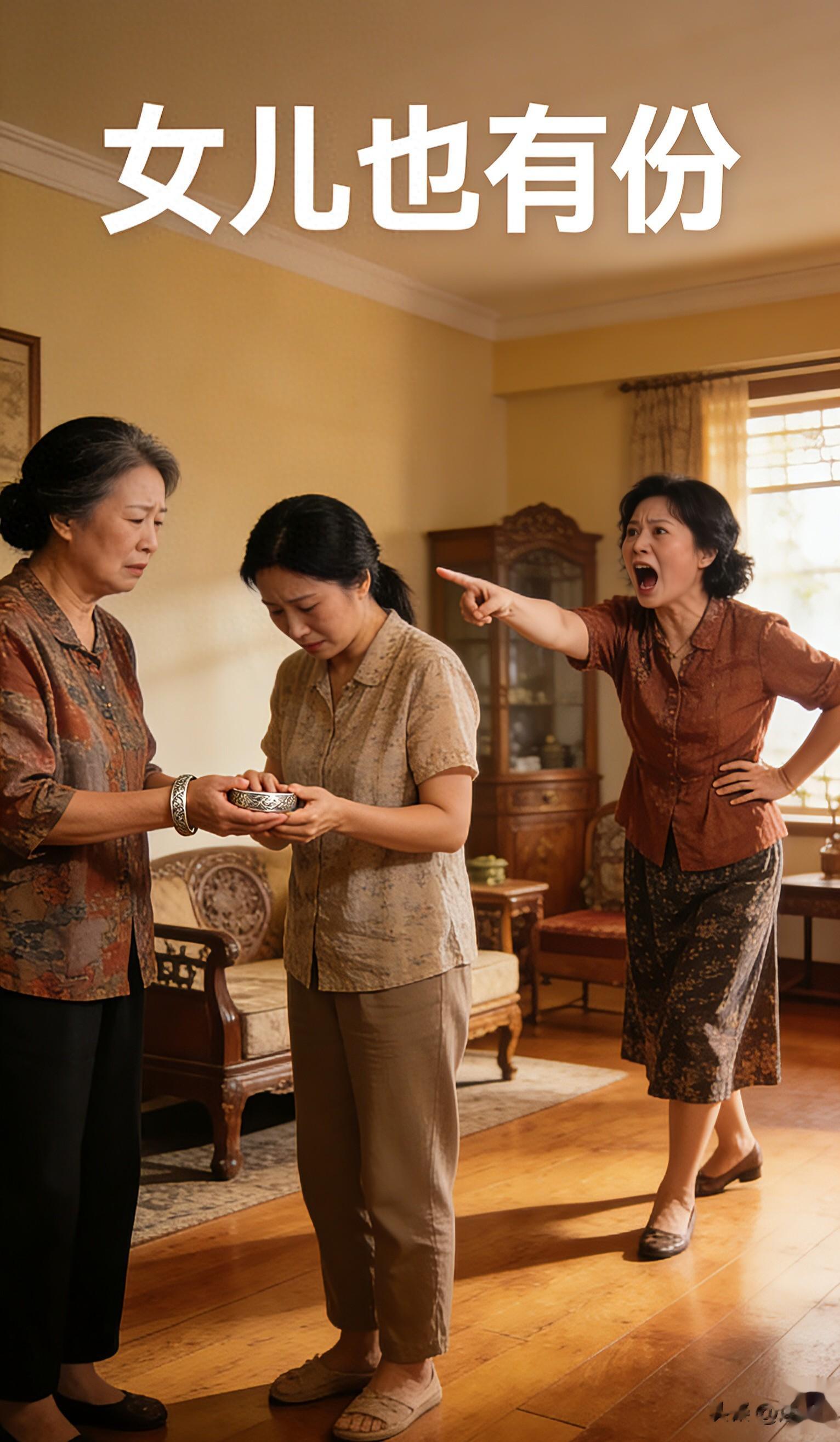 没想到,几天后,我远嫁外省的姑姑(父亲的姐姐)突然打来电话,语气非常激动,劈头就问:“浩浩,我听人说,你妈把家里的老银镯子给你媳妇了?有没有这回事?” 我如实说了。姑姑在电话那头声音立刻就带了哭腔:“那是你太奶奶的东西!是留给你们王家媳妇的没错,可我也是王家的女儿!我出嫁的时候,你奶奶什么都没给我!现在你妈一声不吭就把东西给了你媳妇,眼里还有没有我这个女儿?我就没资格看一眼、摸一下吗?女儿就不是后人了吗?”