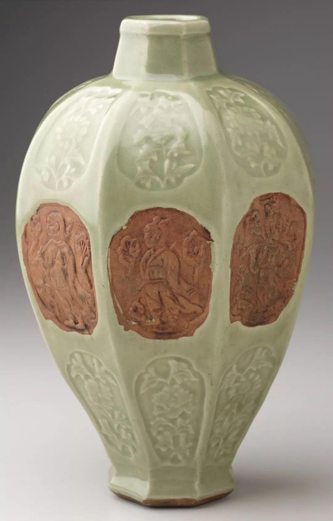 元龙泉窑露胎人物纹梅瓶 明尼阿波利斯艺术博物馆从这些国内外博物馆的龙泉瓷器中,我们不仅能看到当时龙泉青瓷的兴盛,同时也能看到中外商贸与文化交往的繁荣昌盛。这也正是一个大国应有的国家气度。