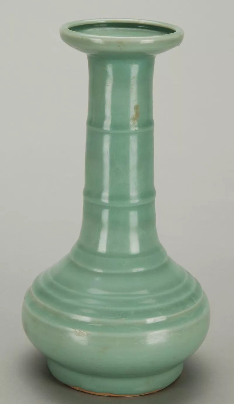 南宋龙泉窑青釉弦纹长颈盘口瓶 大维德基金会