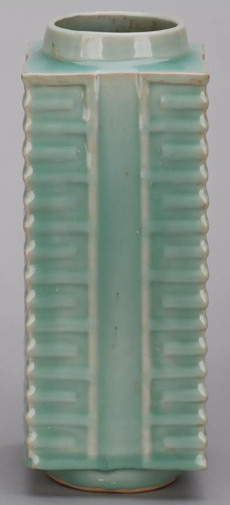 南宋龙泉窑青釉琮式瓷瓶 四川宋瓷博物馆