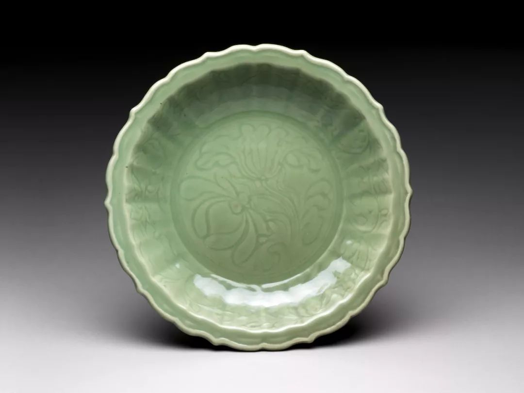 明初龙泉窑刻花卉纹大盘 大都会艺术博物馆