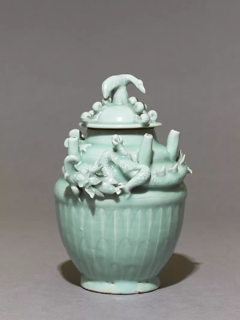 南宋龙泉窑堆塑蟠龙莲瓣纹盖罐上海博物馆