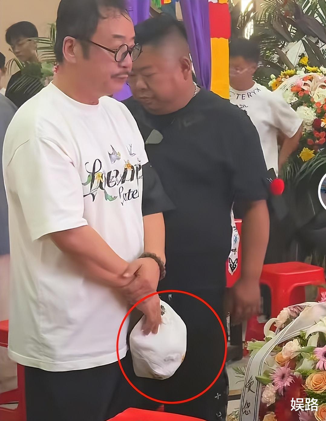 葬礼上,燕子李三看上去心情很低落,他双手合十祈祷,还特地摘下帽子默哀,表达对杨少华先生的尊敬。