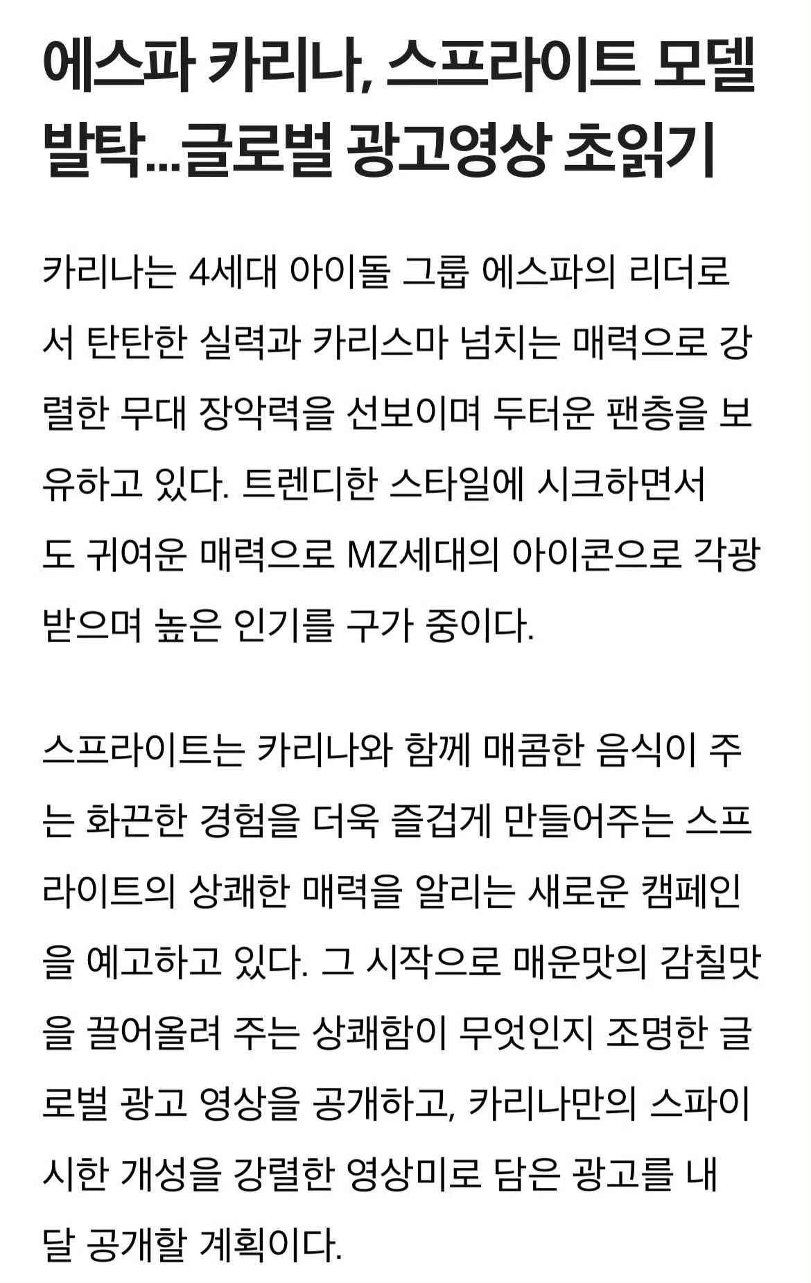 柳智敏被选做雪碧代言人 计划下月拍摄全球广告