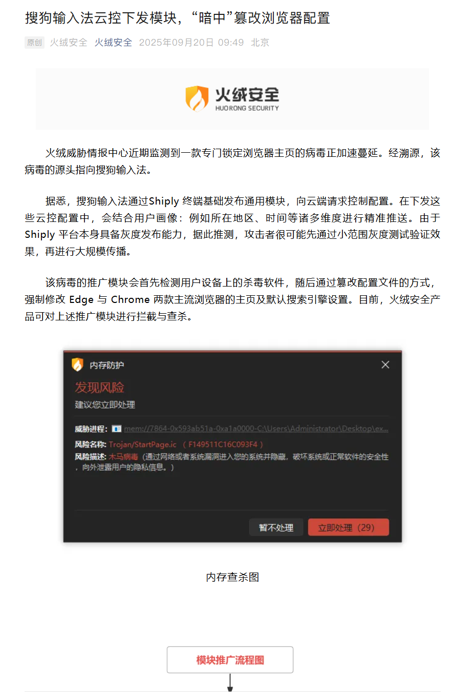 9月下旬,火绒安全团队披露一起与用户浏览器设置相关的异常操作事件。报告指出,某主流输入法产品借助云端更新机制,在未明确提示的情况下,对部分用户的浏览器首页及搜索引擎选项进行了非自主变更,涉及Chrome与Edge两款常用浏览器。该行为依托于其内置的远程配置服务,能够依据用户的地理位置、使用时段等特征实现差异化推送。由于该平台具备分阶段推送功能,外界分析认为相关操作可能先经小范围试验,再逐步扩大影响范围。此外,该模块还会识别用户系统中安装的安全防护程序,通过调整浏览器参数实现设定内容的强制跳转。相关情况曝光后,迅速在社交及科技媒体引发广泛关注。