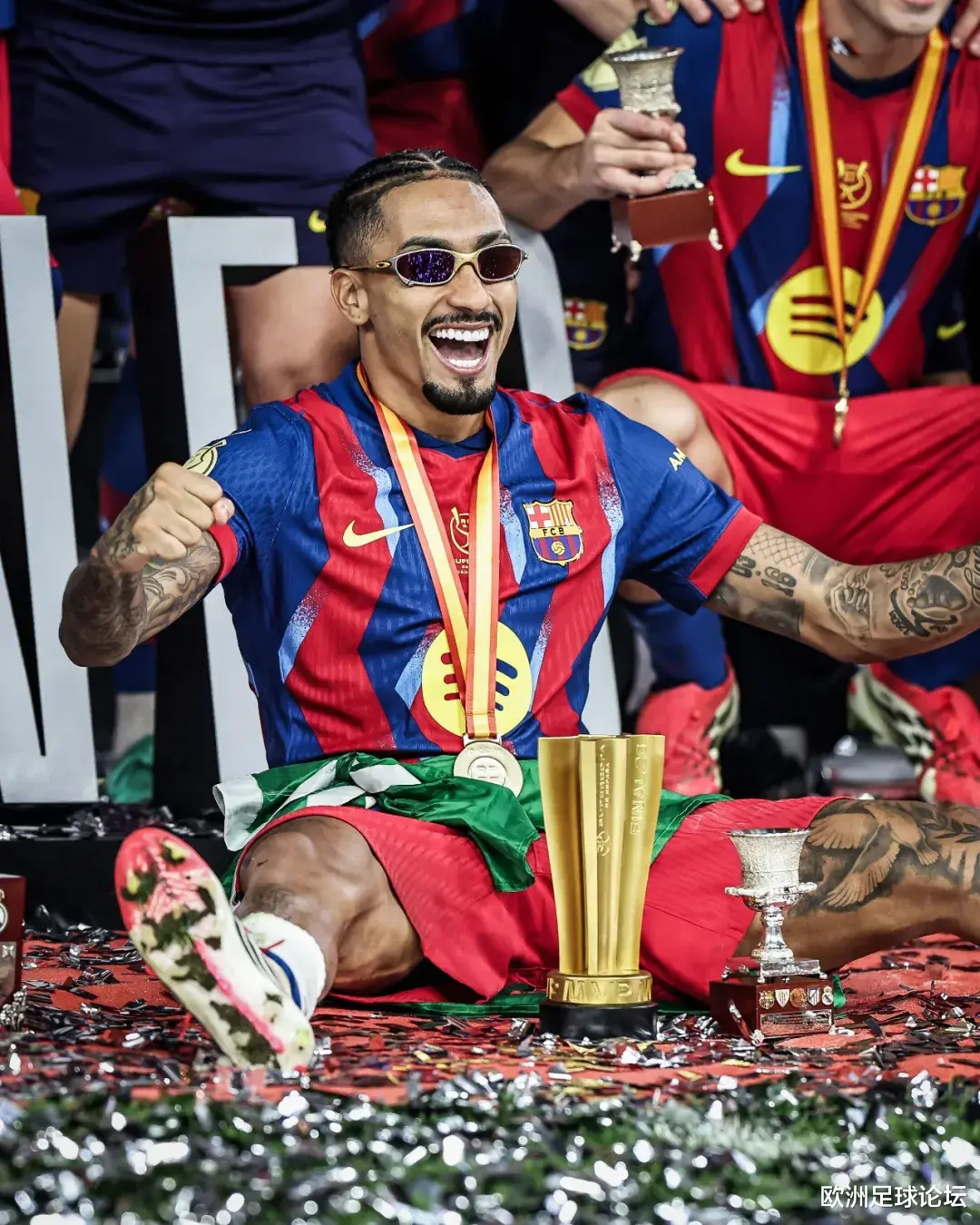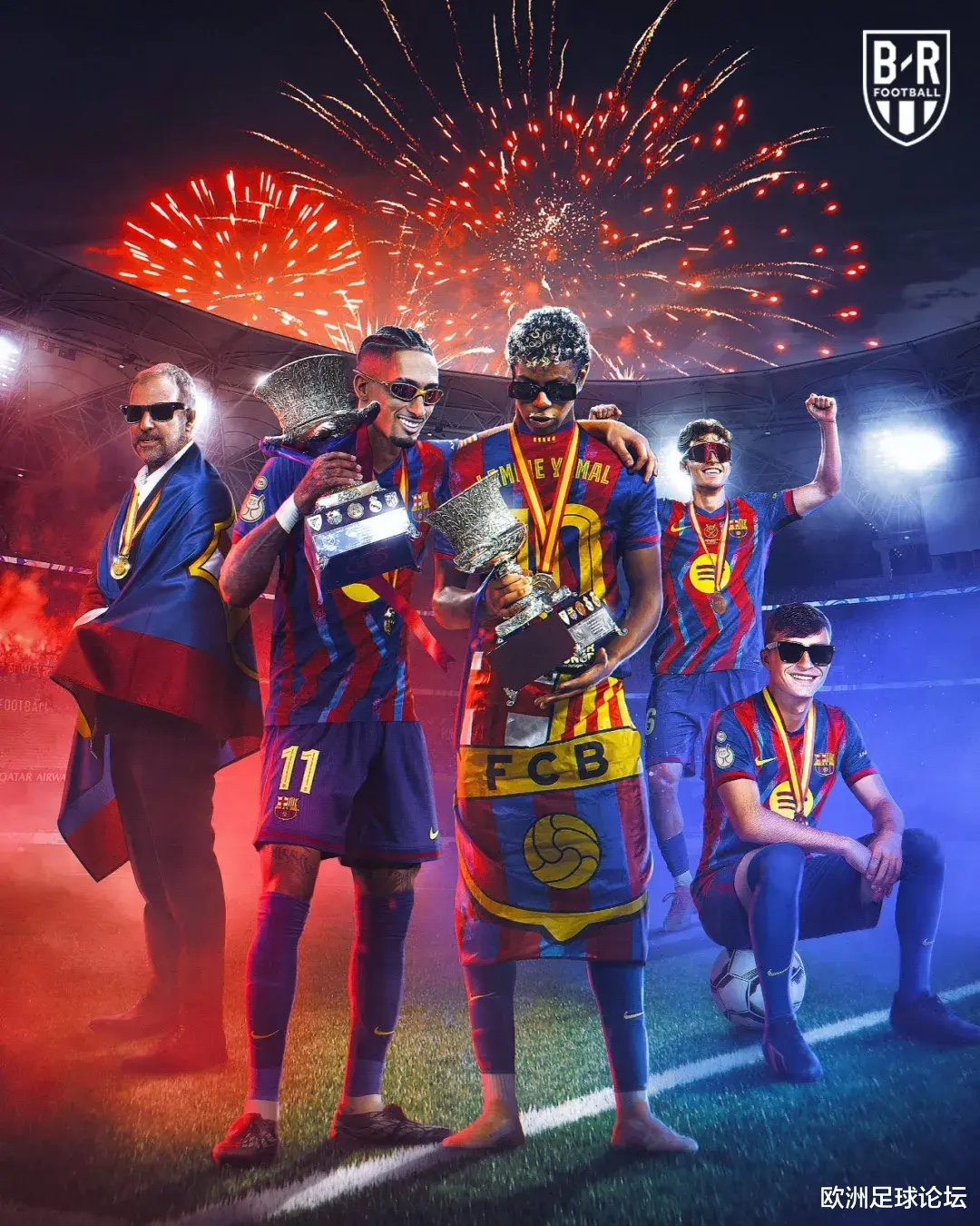 首先看看双方的首发名单。巴萨首发:乔安-加西亚、孔德、库巴西、埃里克-加西亚、巴尔德、佩德里、德容、费尔明、亚马尔、莱万、拉菲尼亚。