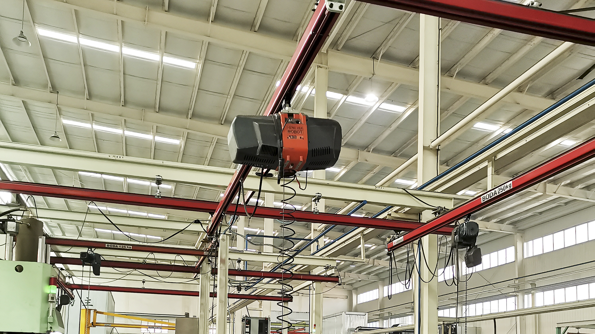 现代阶段:近年来,电动伺服技术和智能控制系统加入,助力平衡吊实现了“精准定位+无线控制”,不仅能精准控制搬运精度到毫米级,还支持移动轨道安装,可在大面积区域灵活作业,部分设备还能连接工厂管理系统,实现搬运数据记录。