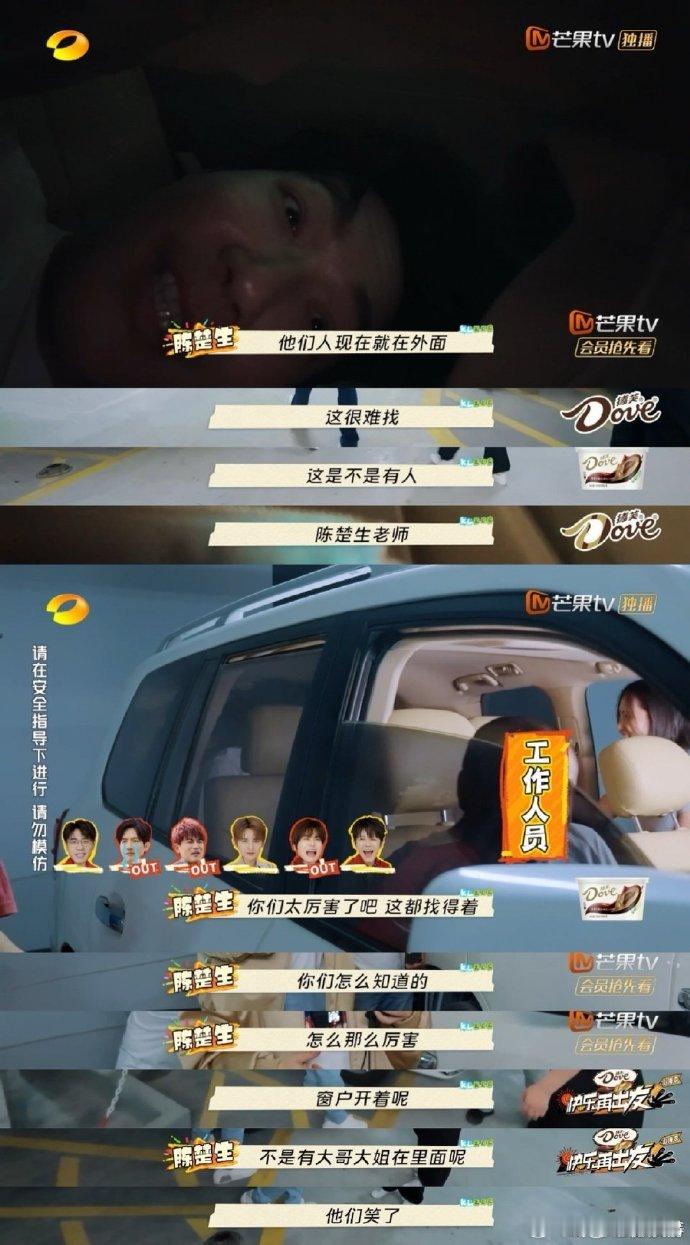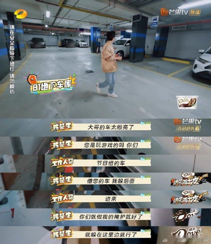 陈楚生地下车库惊心动魄30秒 快乐再出发熟人局 当躲猫猫游戏开始,陈楚生展现出非凡的机智,迅速躲进车里。他在车内紧张地等待,心跳如雷。然而,员工的搜索能力和车主大哥的笑容让他无处可藏,陈楚生下车后,心中满是对胜利的渴望和未能成功的遗憾。