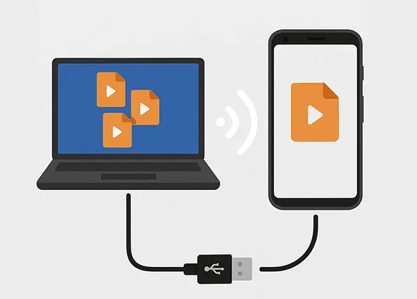 这是一种简单直接的方法,只需使用 USB 数据线即可将 Android 设备视为可移动存储设备。您可以手动将视频从电脑上传到手机。