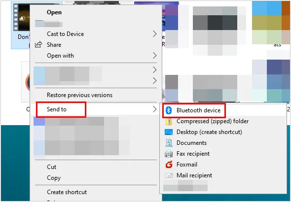 步骤2:在电脑上,右键单击视频文件,选择“发送到”,然后选择“蓝牙设备”。从列表中选择您的Android设备。