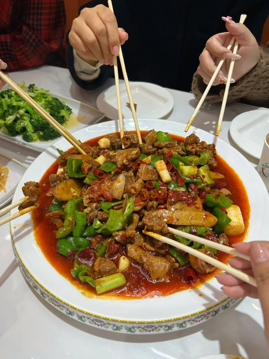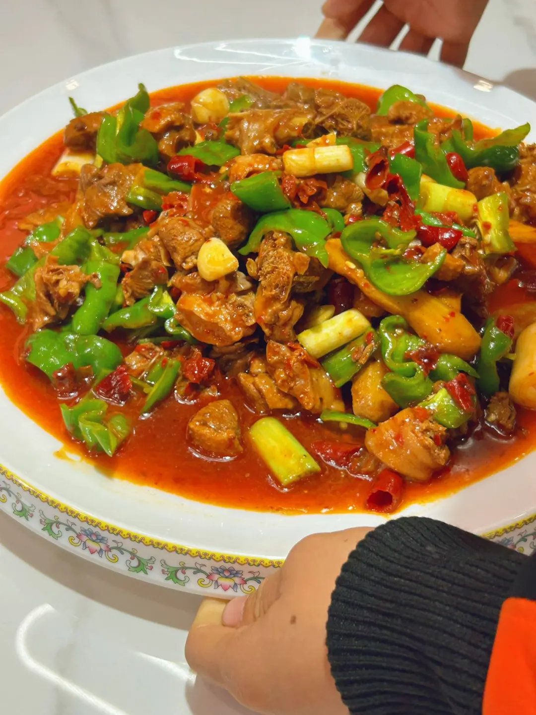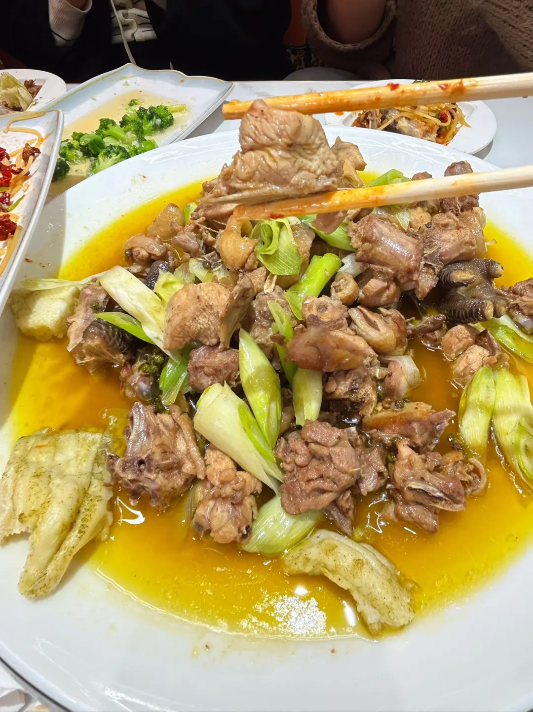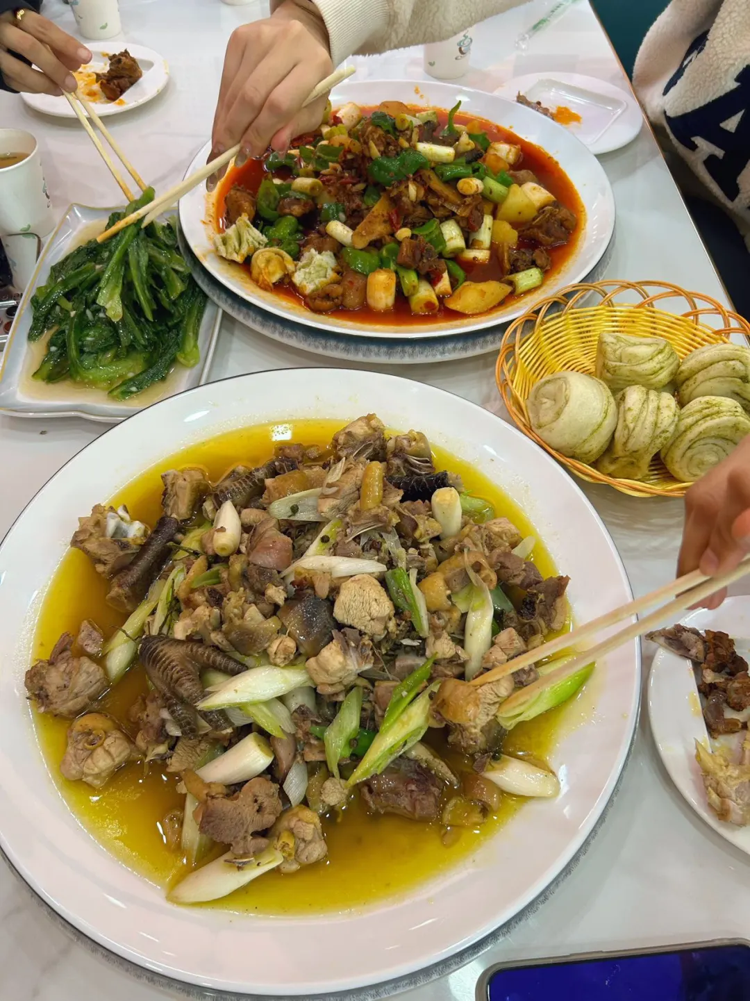 🐔都是新鲜现杀的 散养的🐔每天运动 吃起来肉质的口感是那种紧实的呢 门口还有大灶台 选好口味后就开始炒啦 厨房员工现场剁鸡块 那场面 看着就放心。 而且是现吃现炒哦 是我想要的烟火气。😎