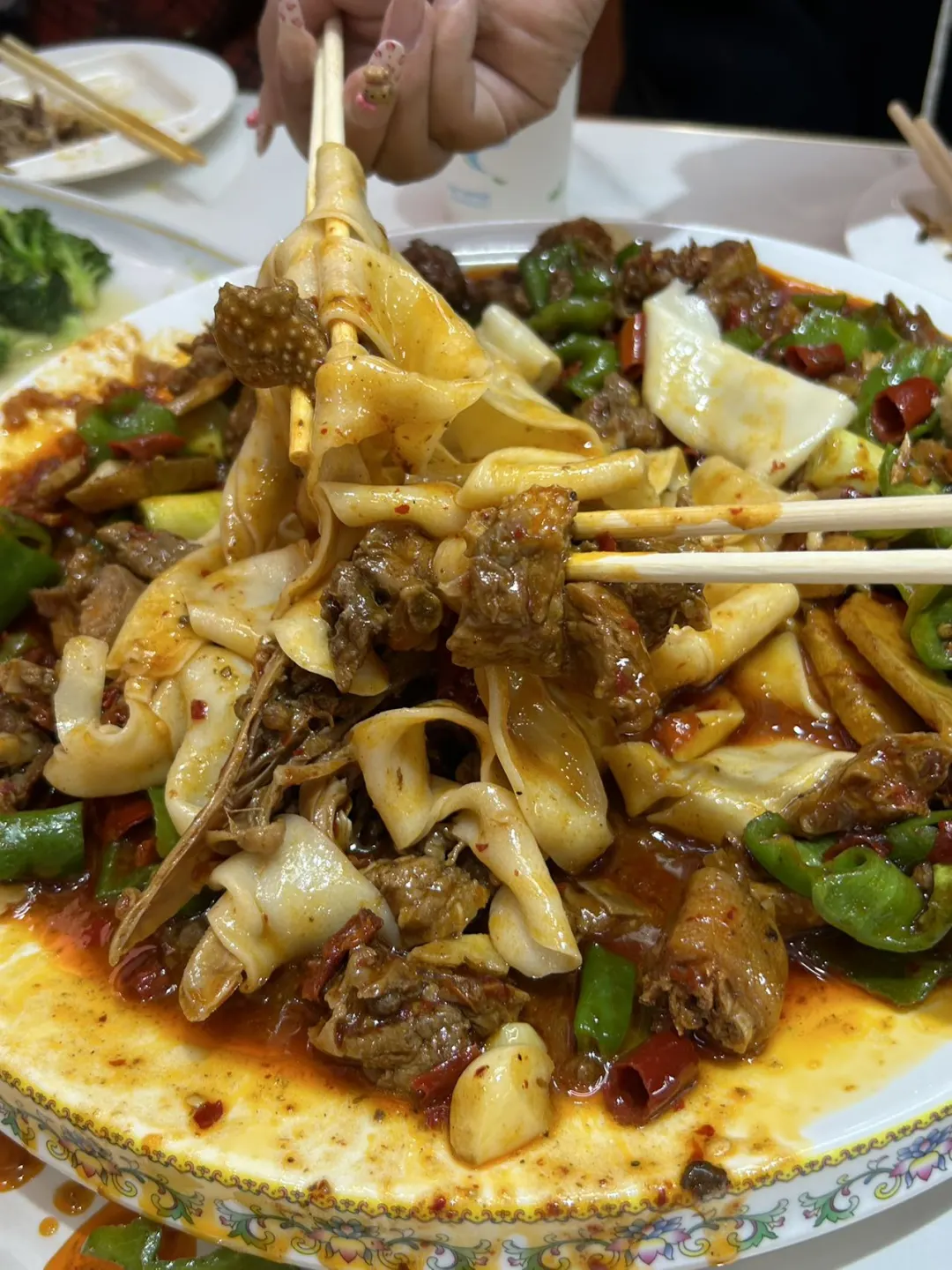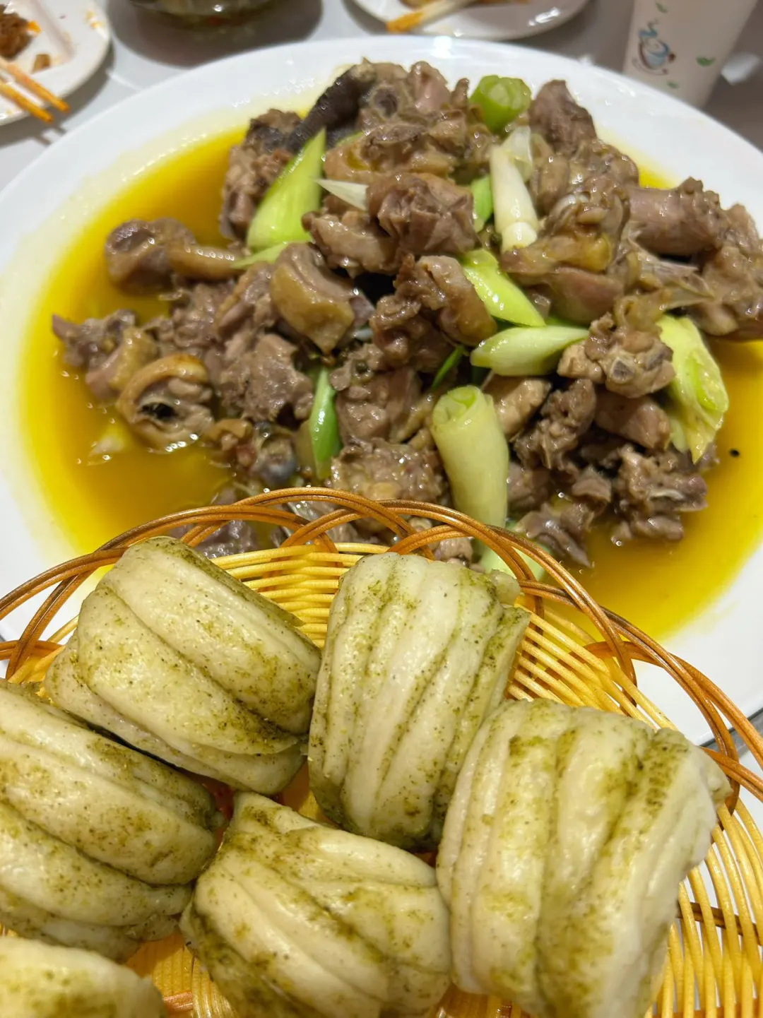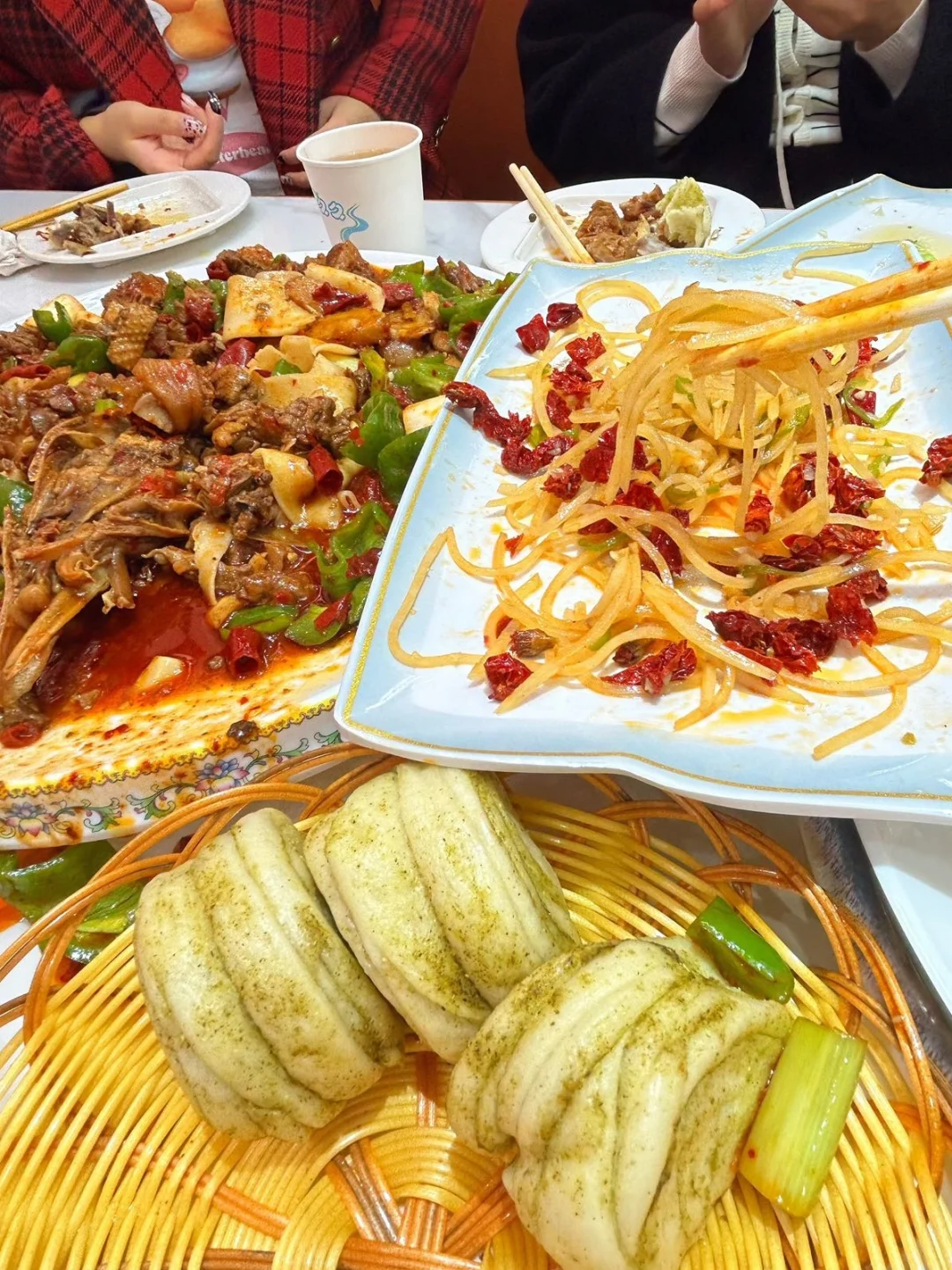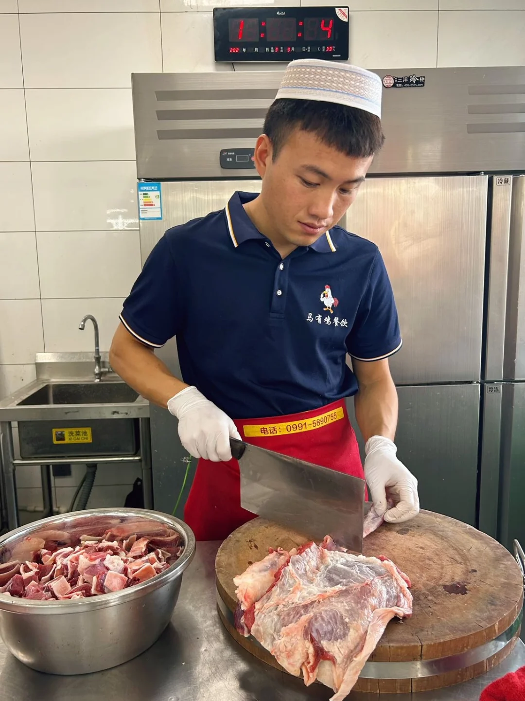 🐔都是新鲜现杀的 散养的🐔每天运动 吃起来肉质的口感是那种紧实的呢 门口还有大灶台 选好口味后就开始炒啦 厨房员工现场剁鸡块 那场面 看着就放心。 而且是现吃现炒哦 是我想要的烟火气。😎