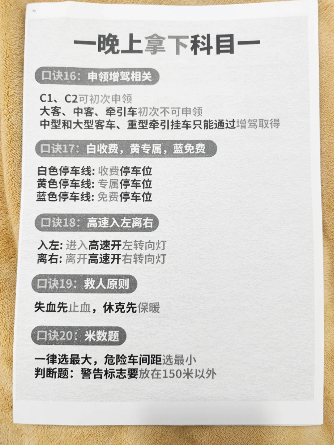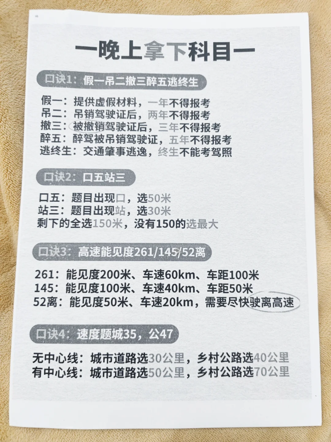 宝子们‼️👋🏼 以过来人的经验告诉大家,科目一千万不要抱侥幸心理!💓 身边就有不少随便看点技巧就去考试的,结果只有60-70分,浪费时间又影响心态😵💫 - 实在懒得刷题,也至少要用1-2天的时间背背科目一速记口诀,多刷刷模拟题,多做几次模拟考试,还可以倍速看看x i。ao,X🌟 i a✅o 🌸🌺讲科目一技巧,🎬会比文字生动好记哦,另外一定要保持好心态,这样就没问题啦~💯💯 - 祝宝子们科目一都一把过🙋🙋🙋🙋