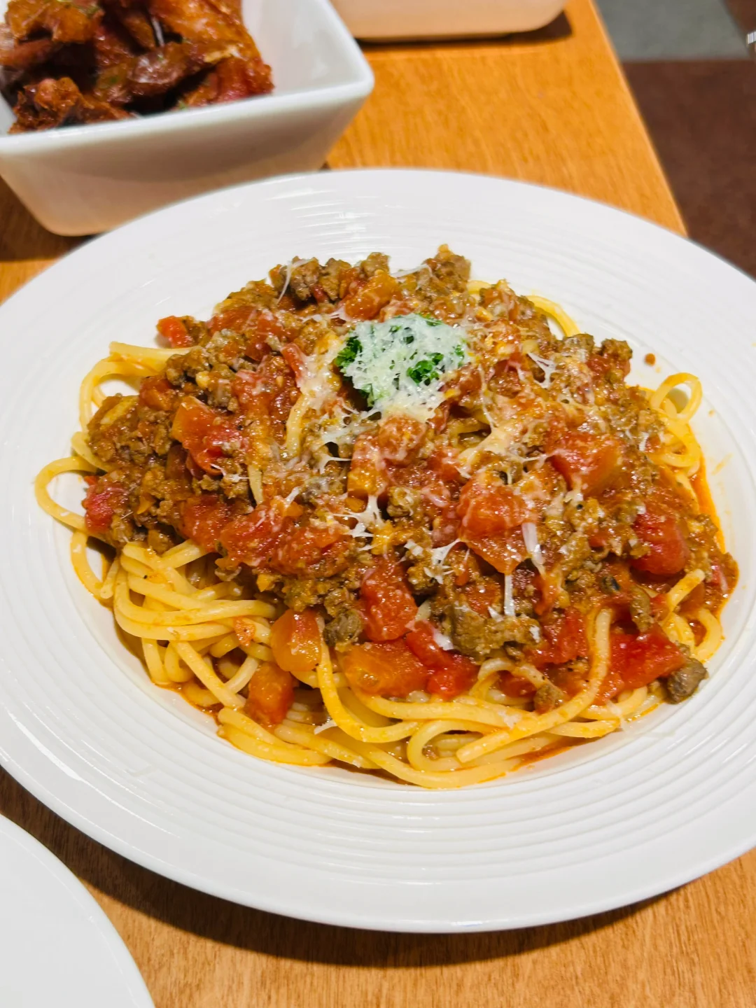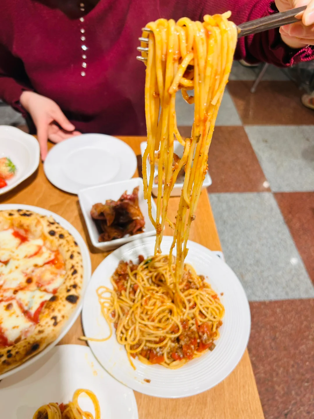 最近迷上了马苏里拉芝士 和朋友跨了三个区来尝尝35r的经典玛格丽特到底怎么回事~ 🍕玛格丽特披萨 饼底很薄,马苏里拉芝士配上酸甜可口多汁的番茄🍅,是好吃的 🍝经典意念 🍝的肉酱酱汁淋的多,吃起来顺滑,👍🏻 35r要啥自行车哈哈