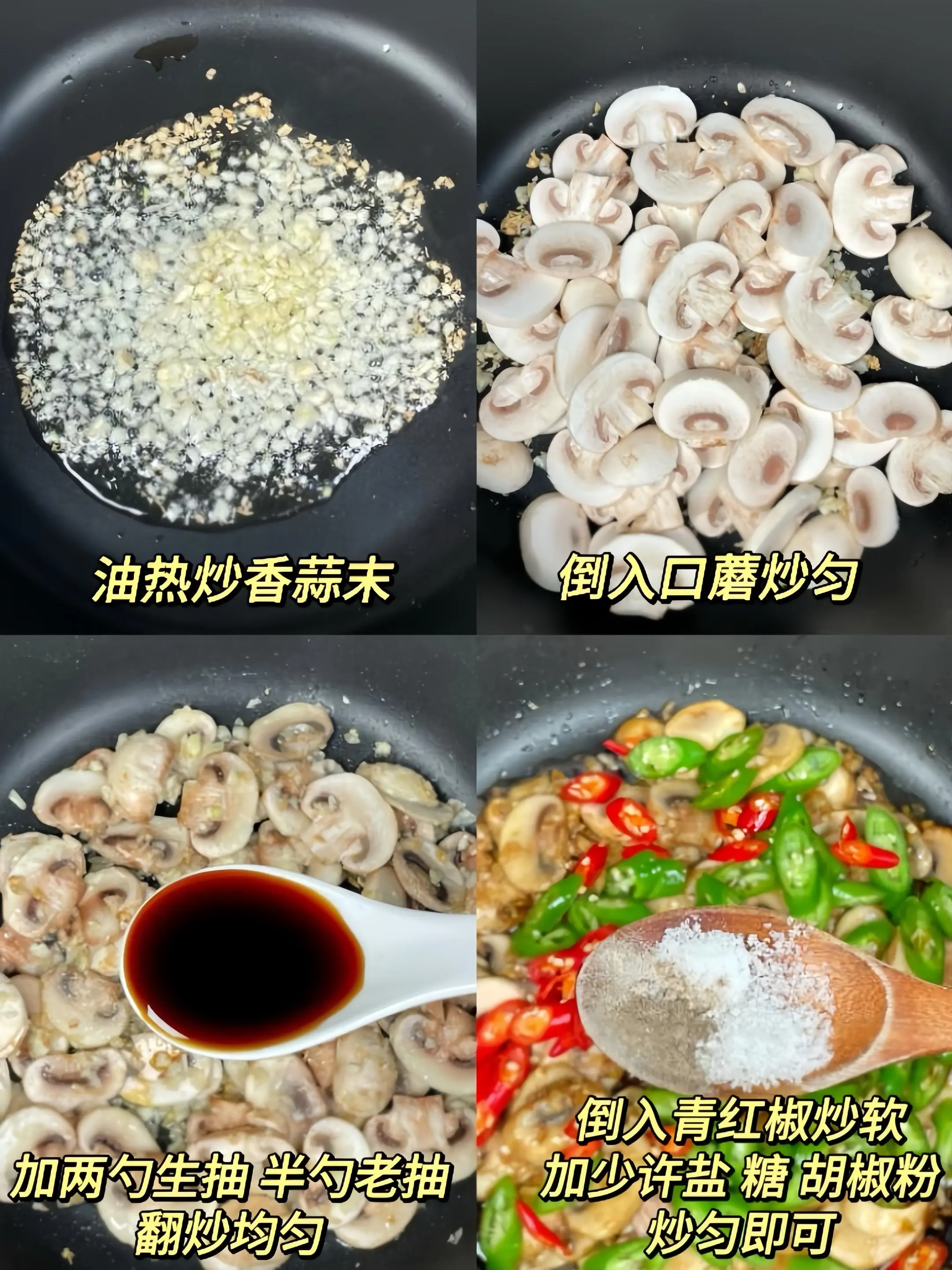 在席上吃过一回,终于要来了配方!!这道双椒口蘑,一出锅就香迷糊啦!口蘑鲜美,香香辣辣,拌饭或夹馒头吃嘎嘎香!