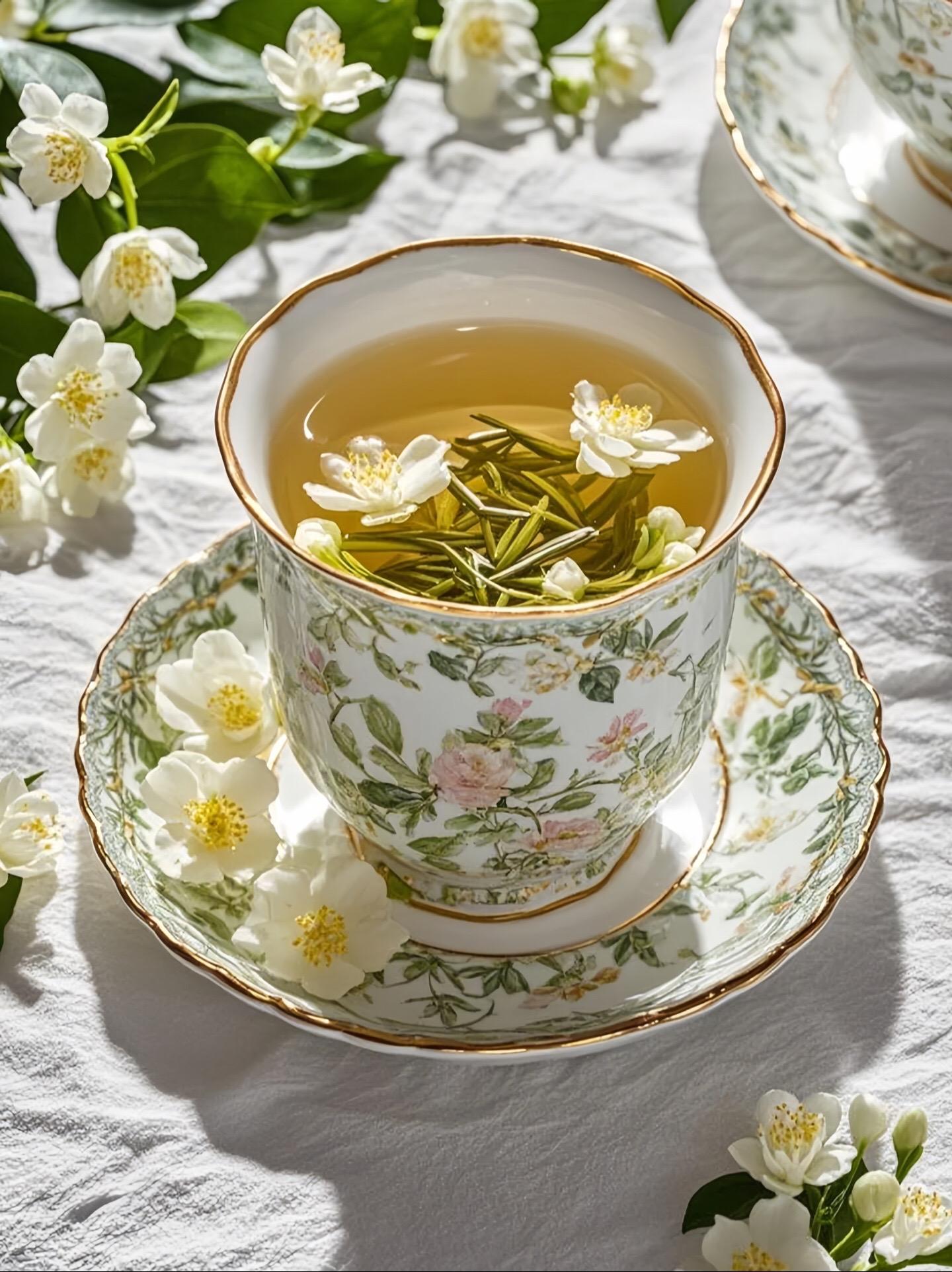 茉莉银针,花茶中的稀世珍品,历经千年传承,以优质白毫银针为茶胚。看,茶汤色泽明黄透亮仿佛金色阳光洒入杯中,那香气,宛如茉莉仙子在比肩轻盈起舞。入口柔和,如云朵轻拂面颊,先从爽口,回荡悠长,一口便令人满口生津。茶针在玻璃杯中静静舒展,犹如一副绝美的画卷,叶底匀整嫩绿,晶莹剔透。
